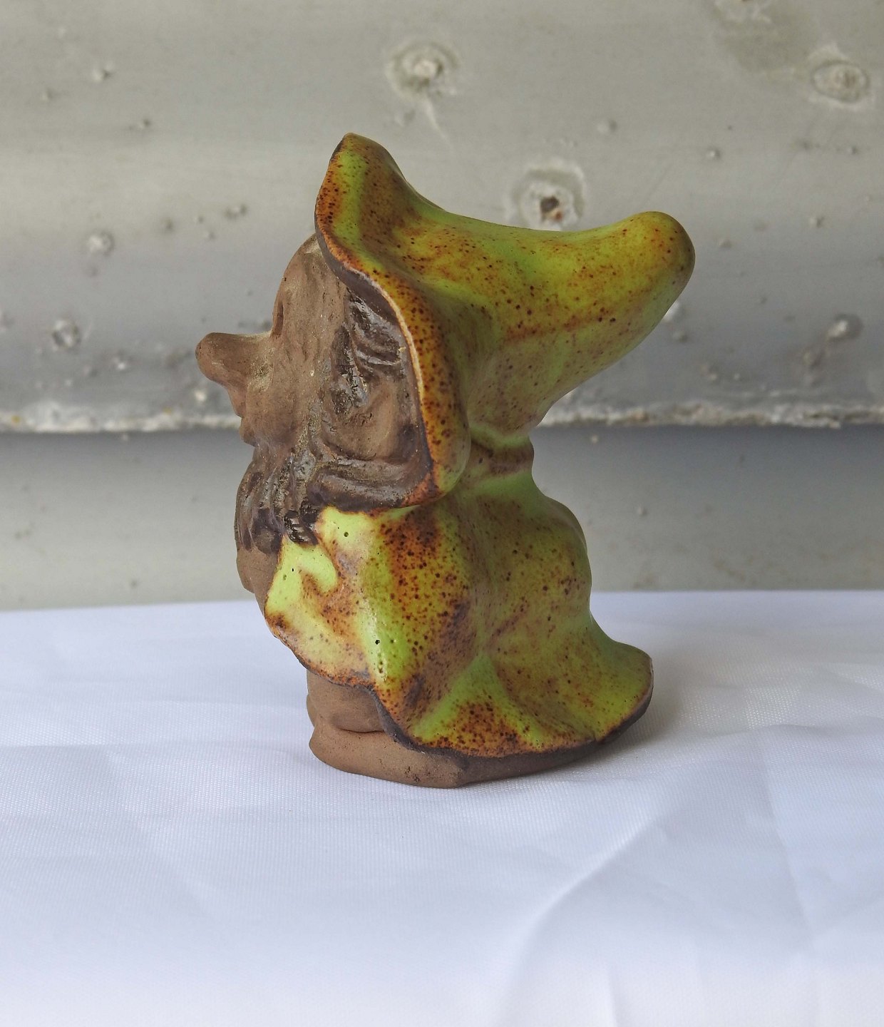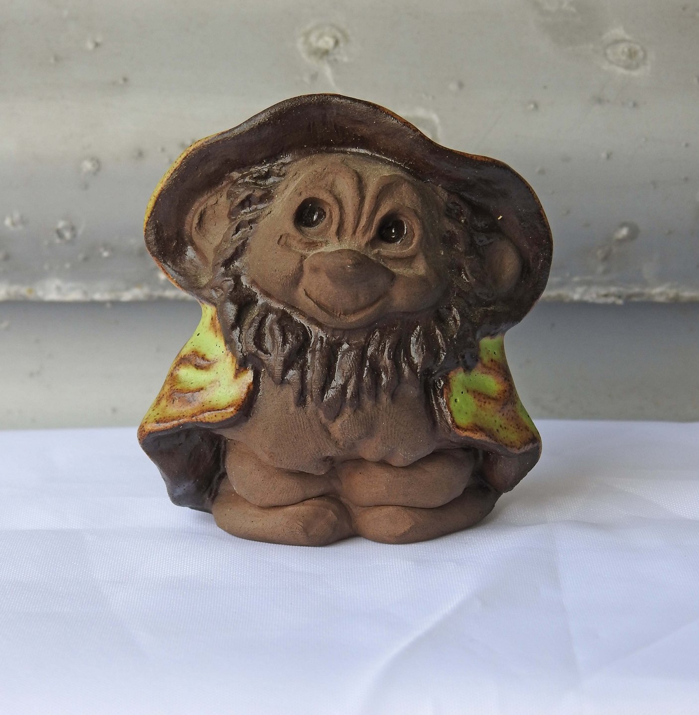 Dam trold i keramik med motiv af Troldedreng med gul kappe og skæg