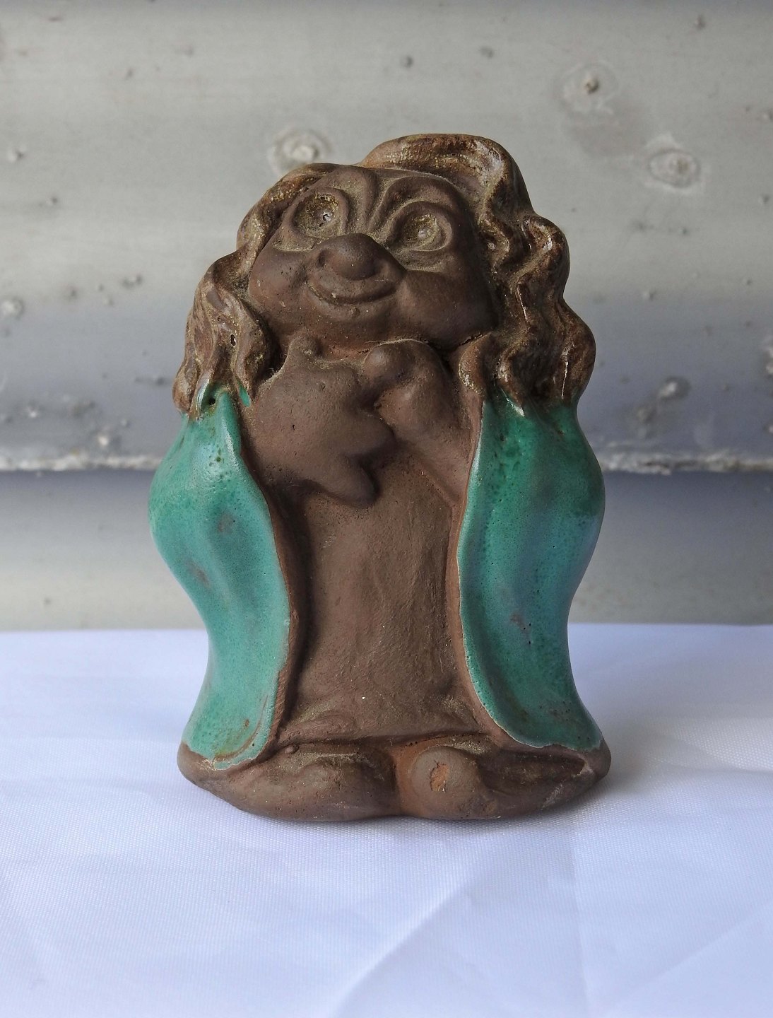 Dam trold i keramik med motiv af Troldepige med lysegrøn kappe