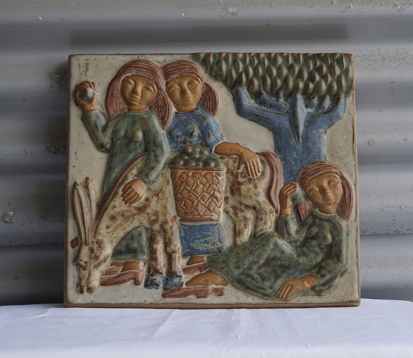Keramik relief Æbleplukkerne