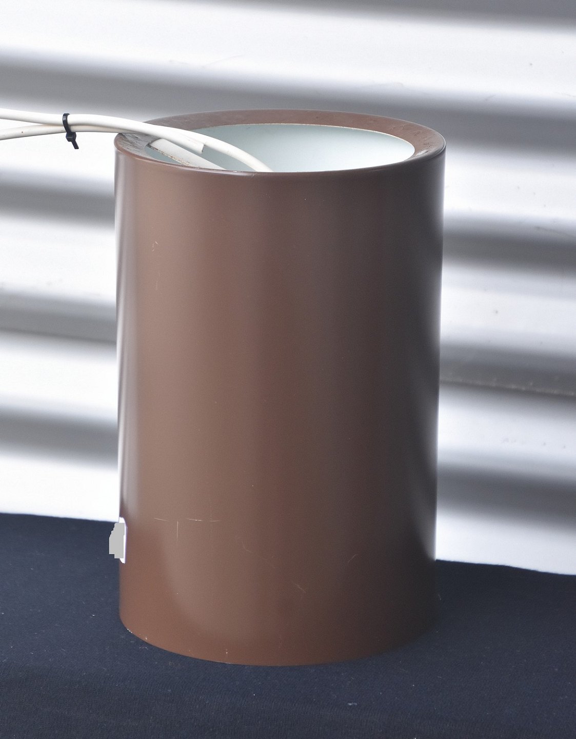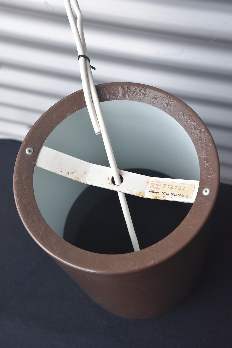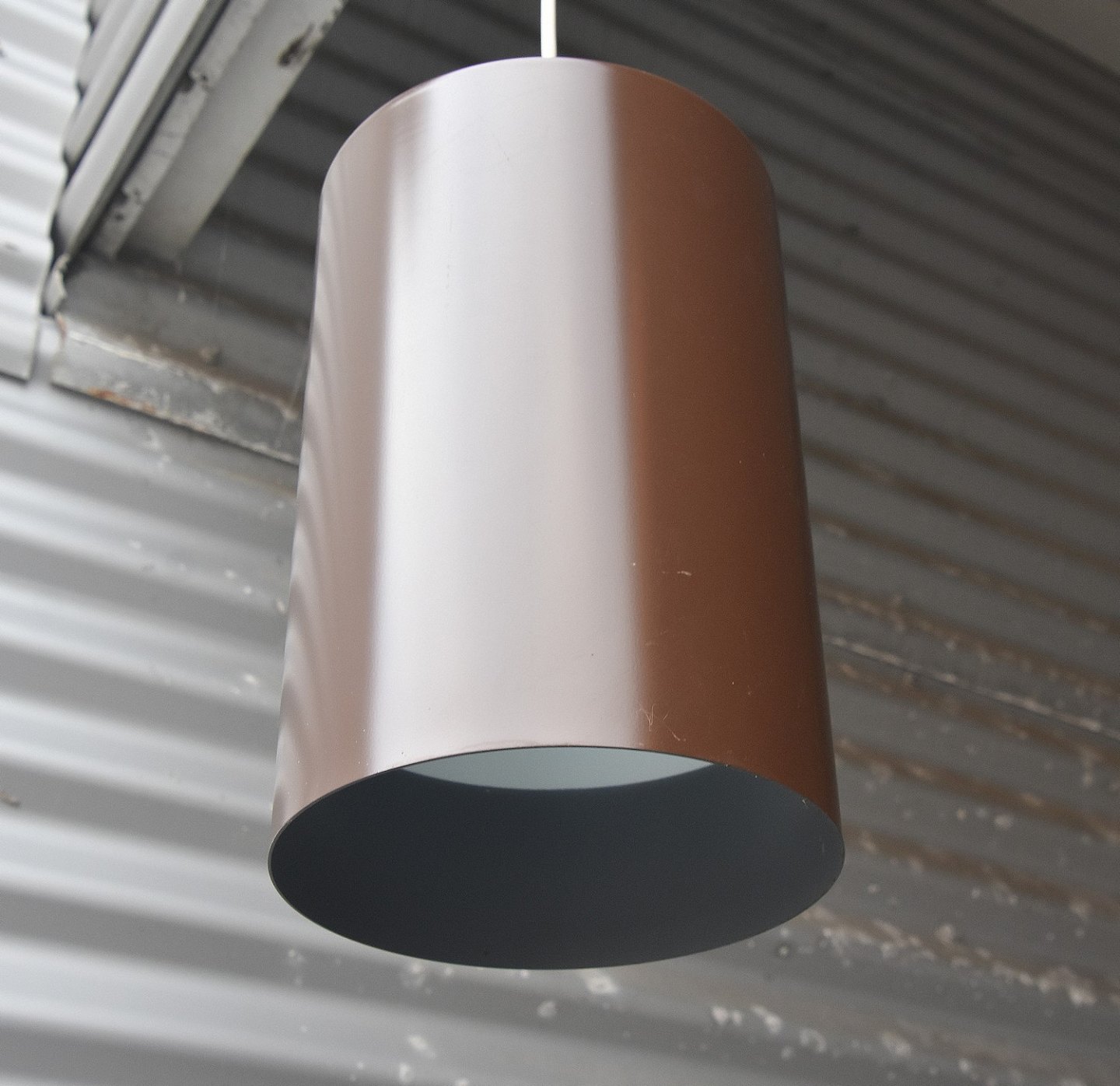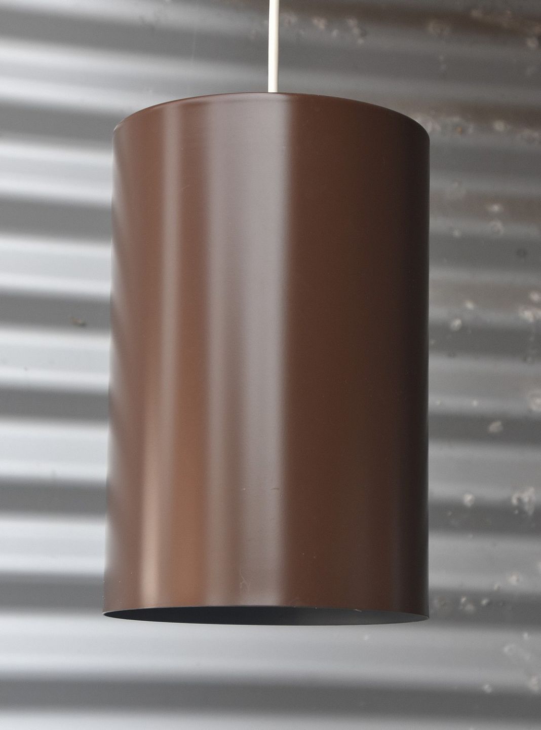"Skorstensrør" i Brun. Materialet er metal der er brunmalet. Vi har 2 stk af denne lampe pt.
