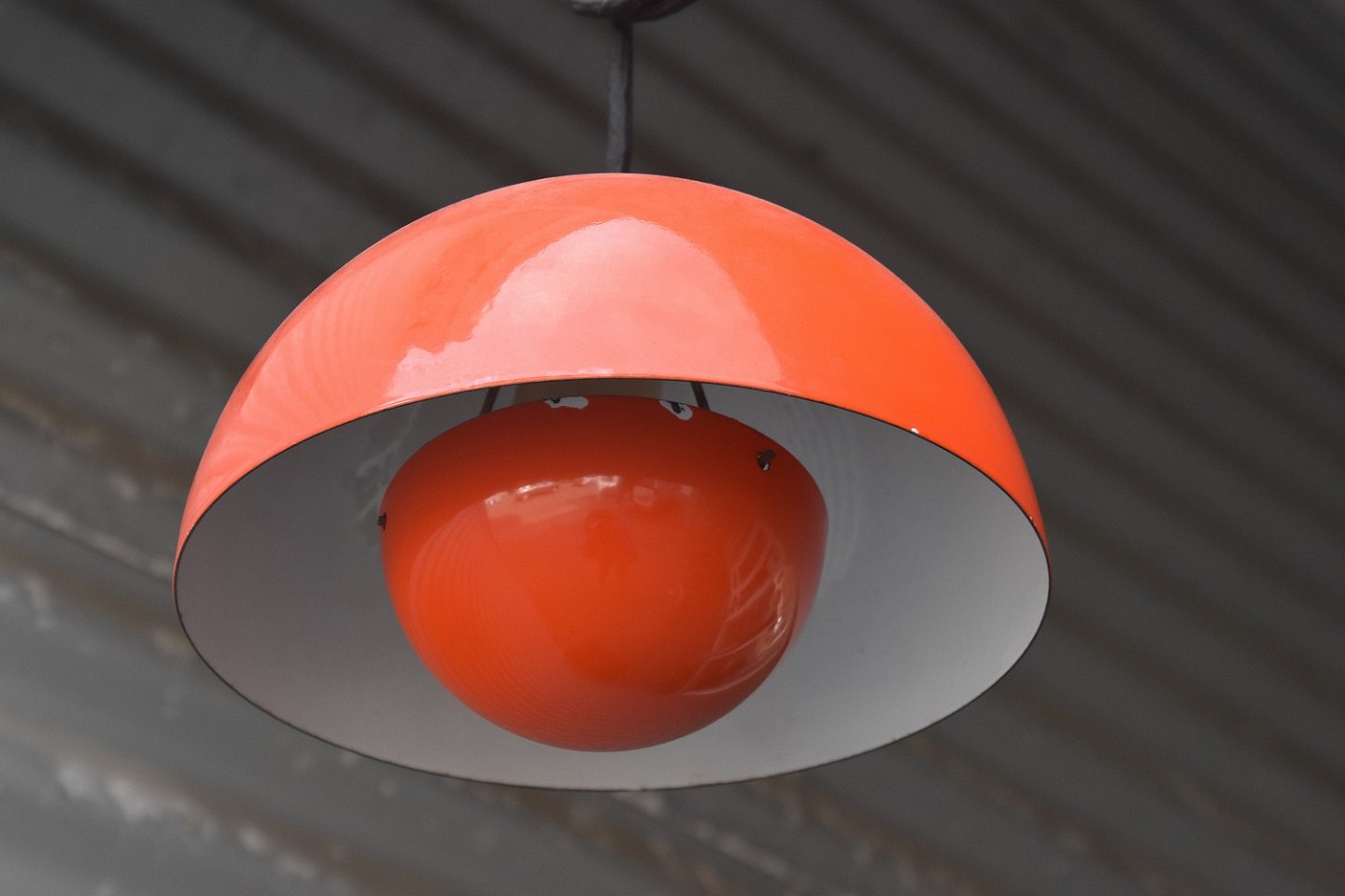 Orange Flowerpot, vi har i butikken 3 Flowerpot i forskellige orangenuancer. Pendlerne er emaljeret.