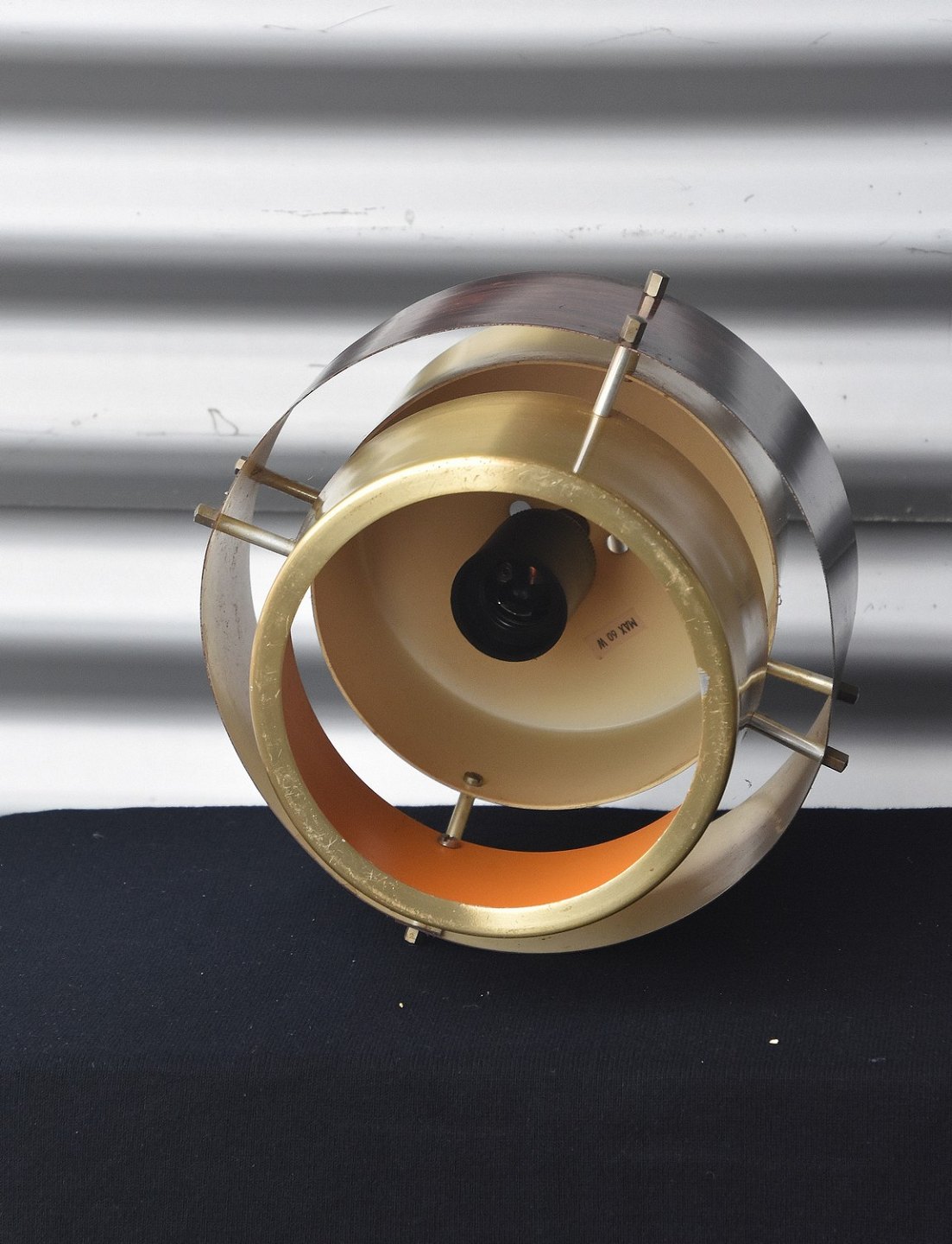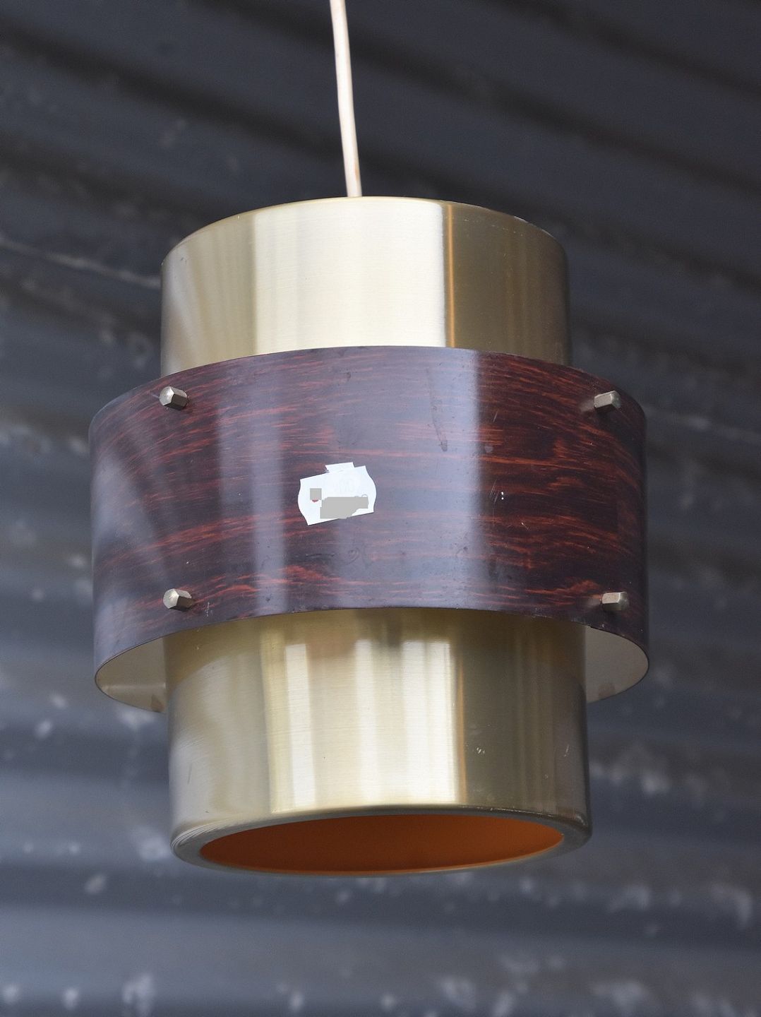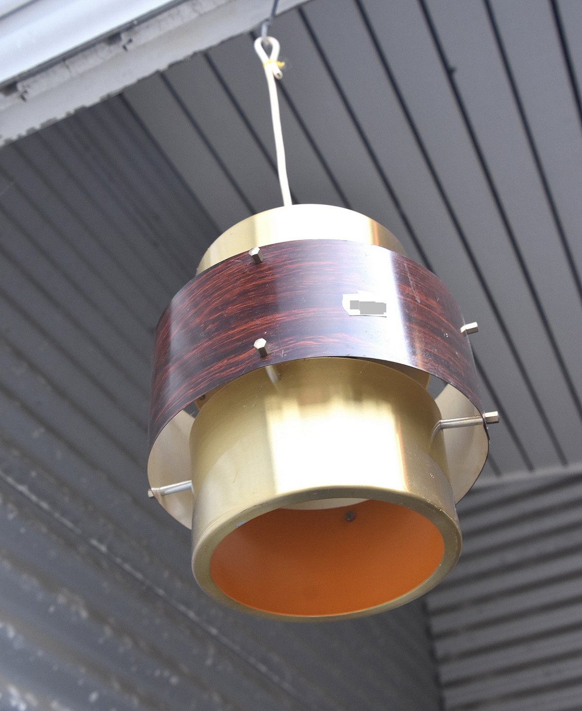 Pendel der er lavet i "messing" og "palisander", pendlen er malet orange indvendig
