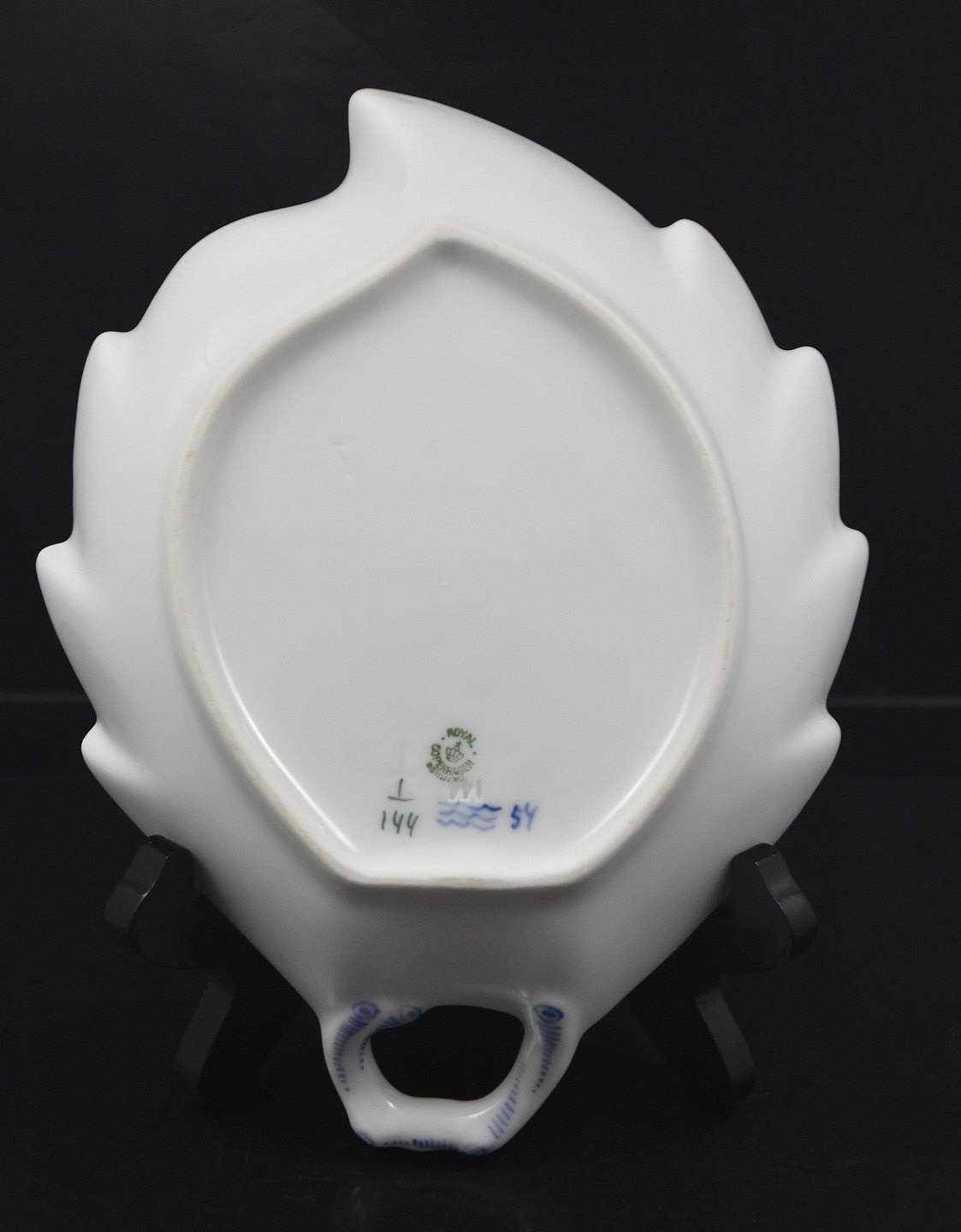 Musselmalet, riflet, bladformet fad (1/144)