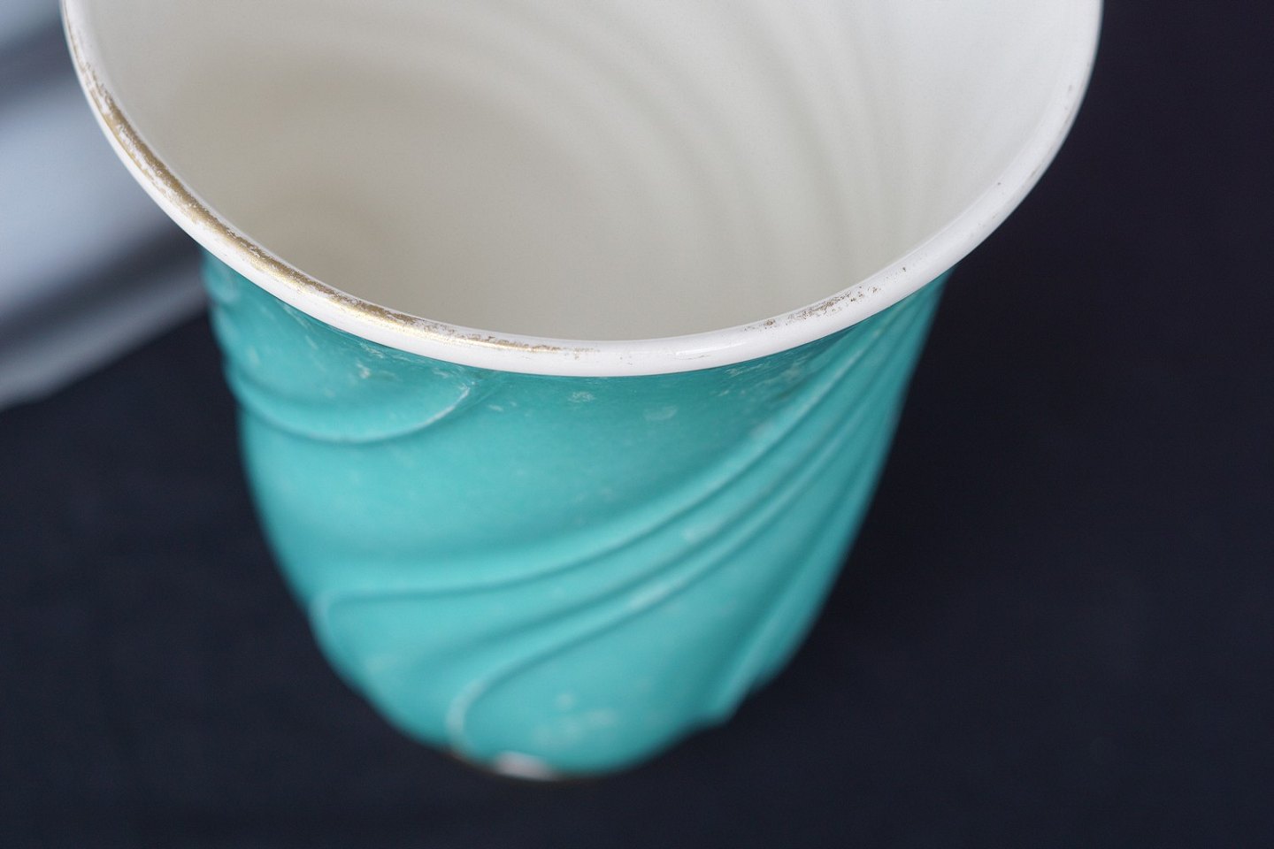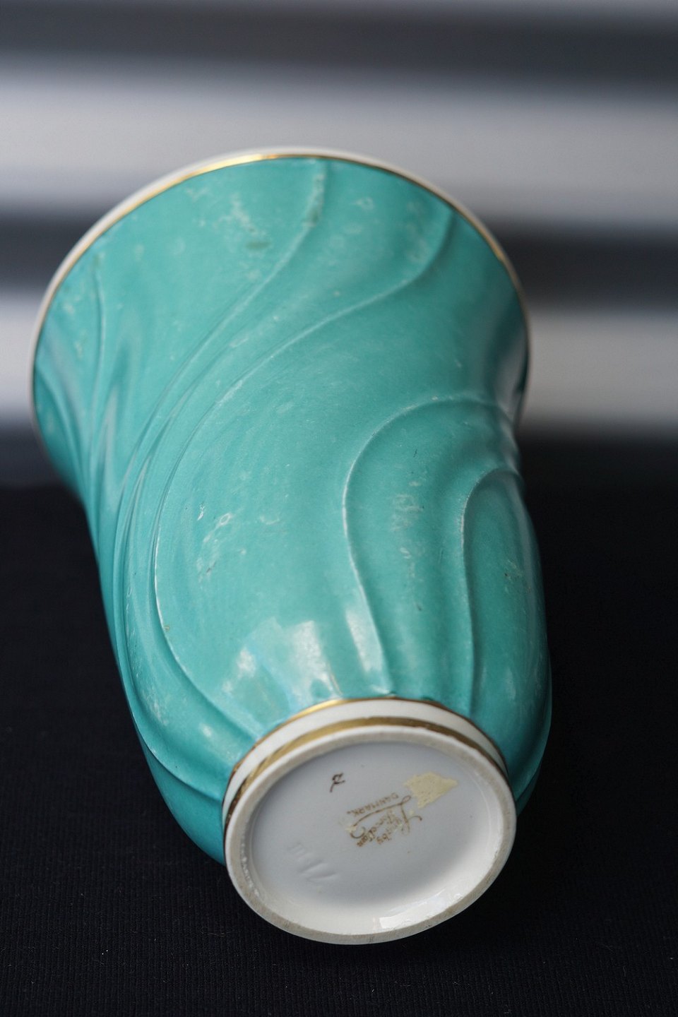 Sjælden svejfet vase i mintgrøn farve med gyldne kanter