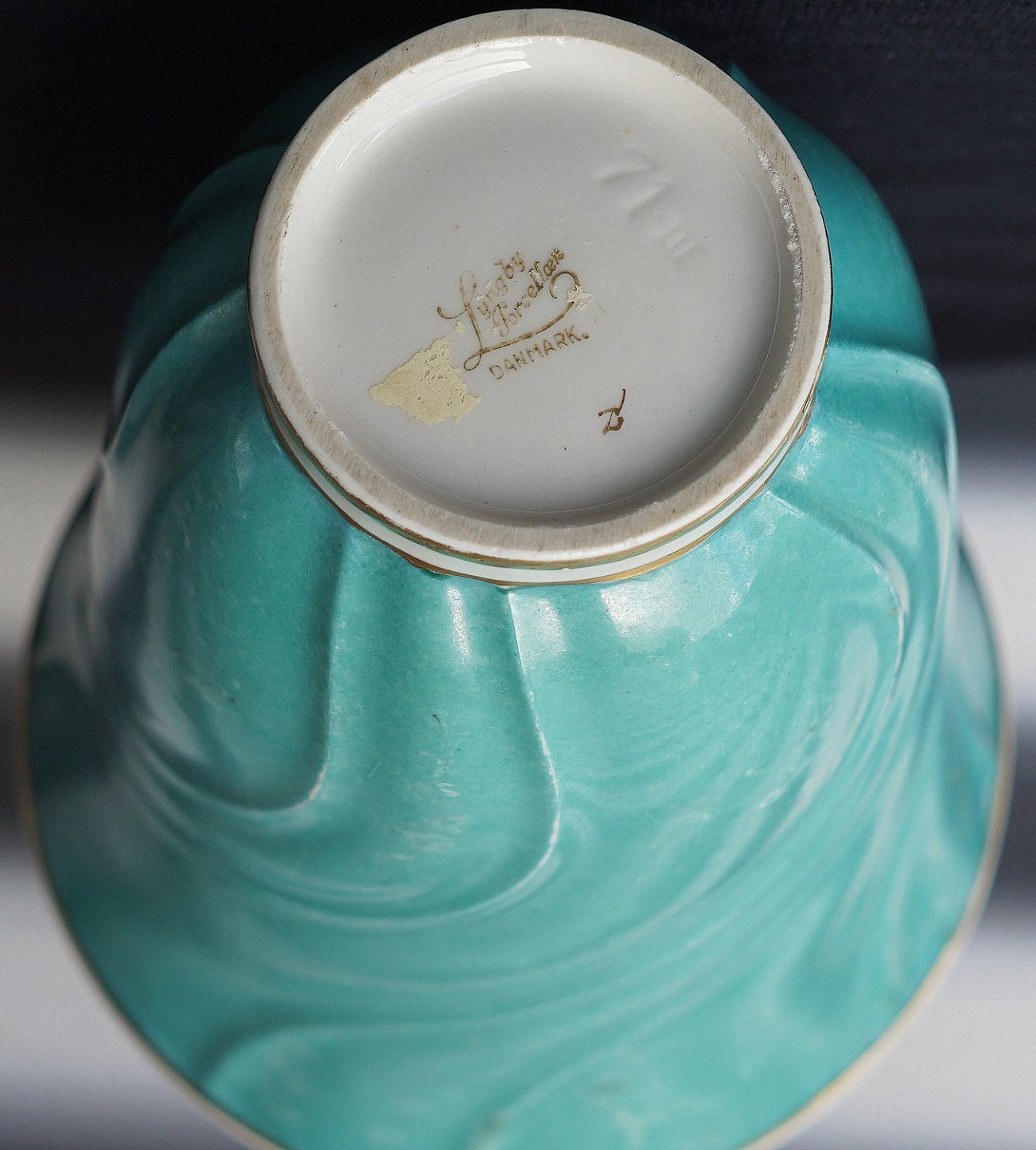 Lyngby porcelæn solgt Grøn vase m/ gylden kant