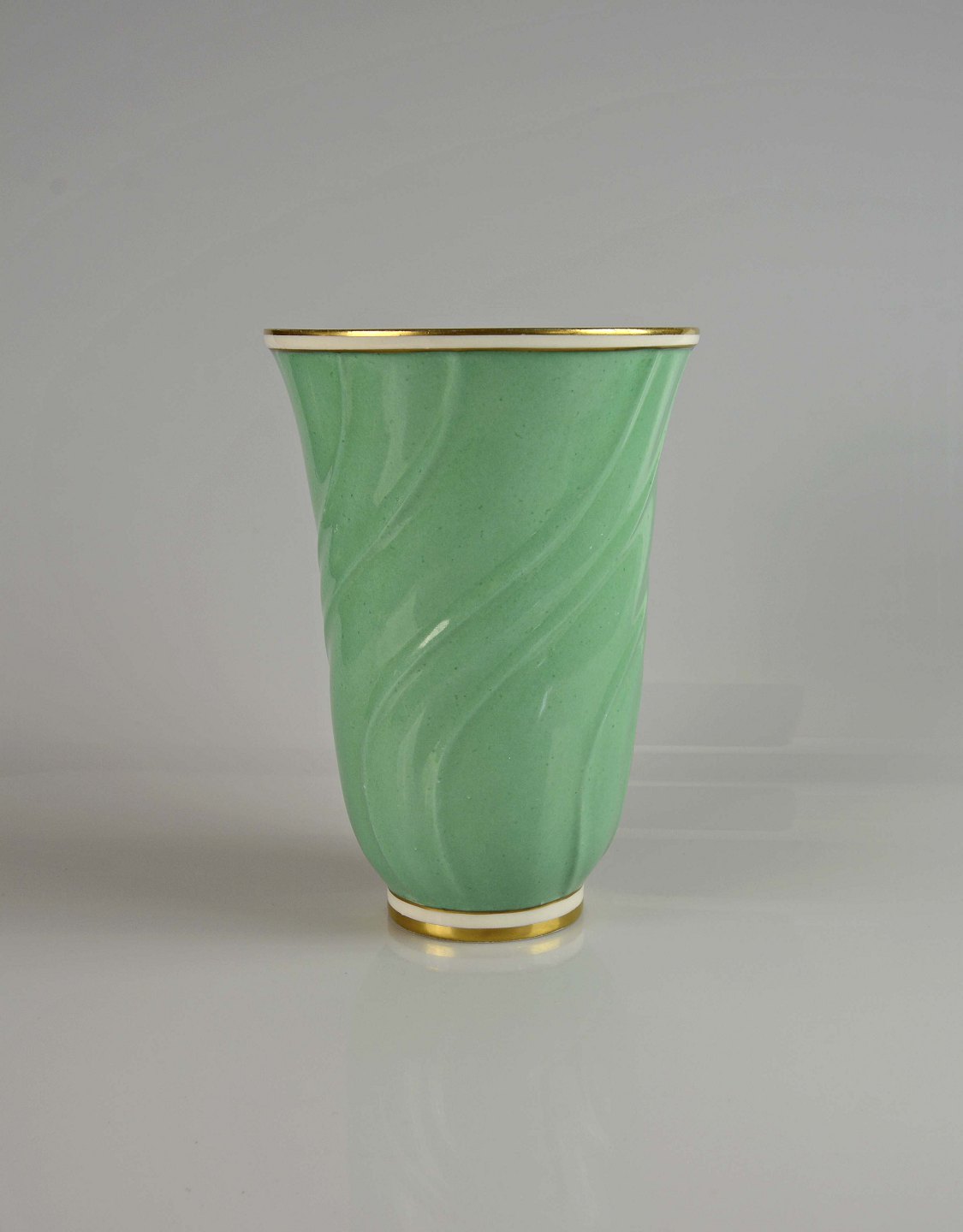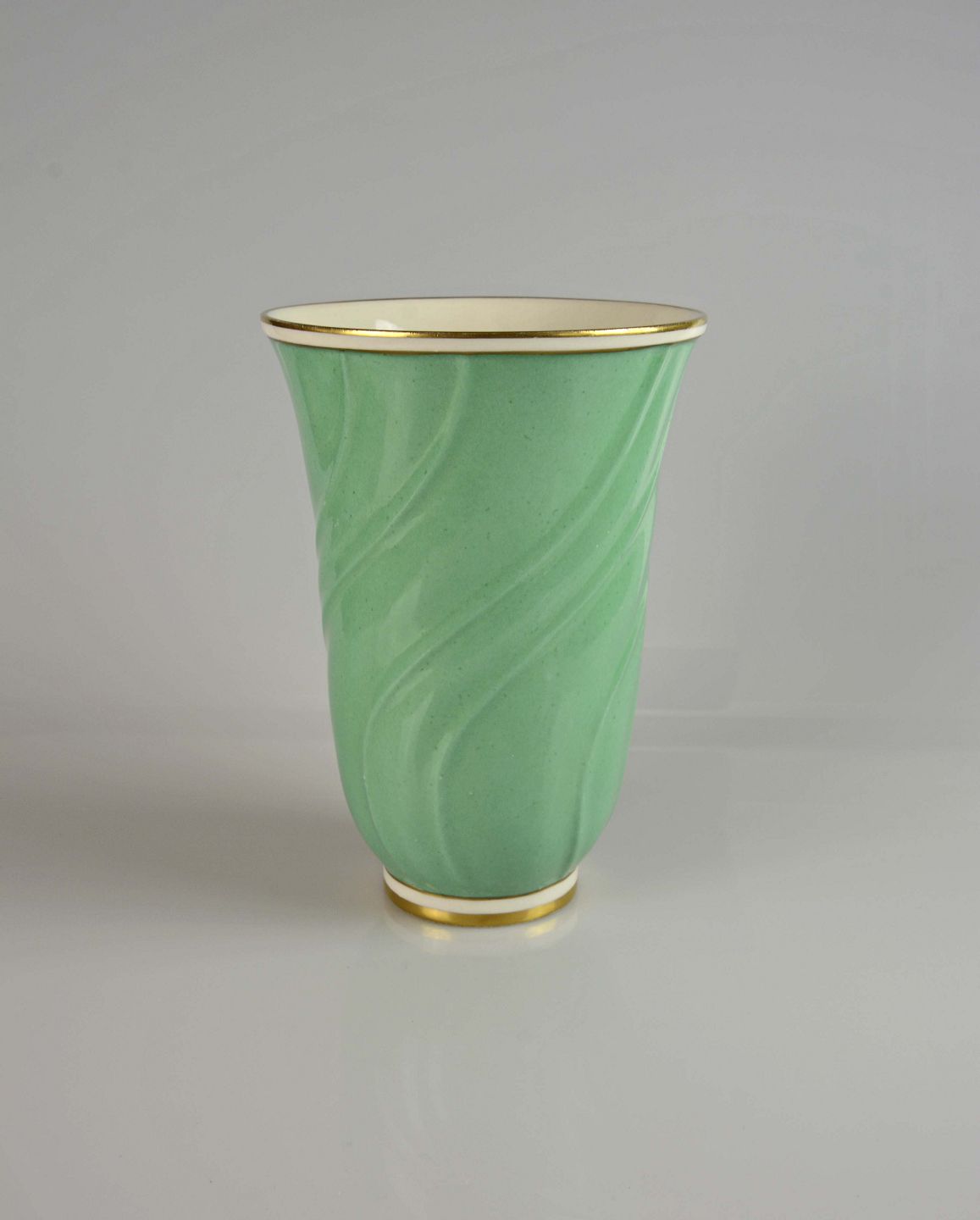 Sjælden svejfet vase i mintgrøn farve med gyldne kanter