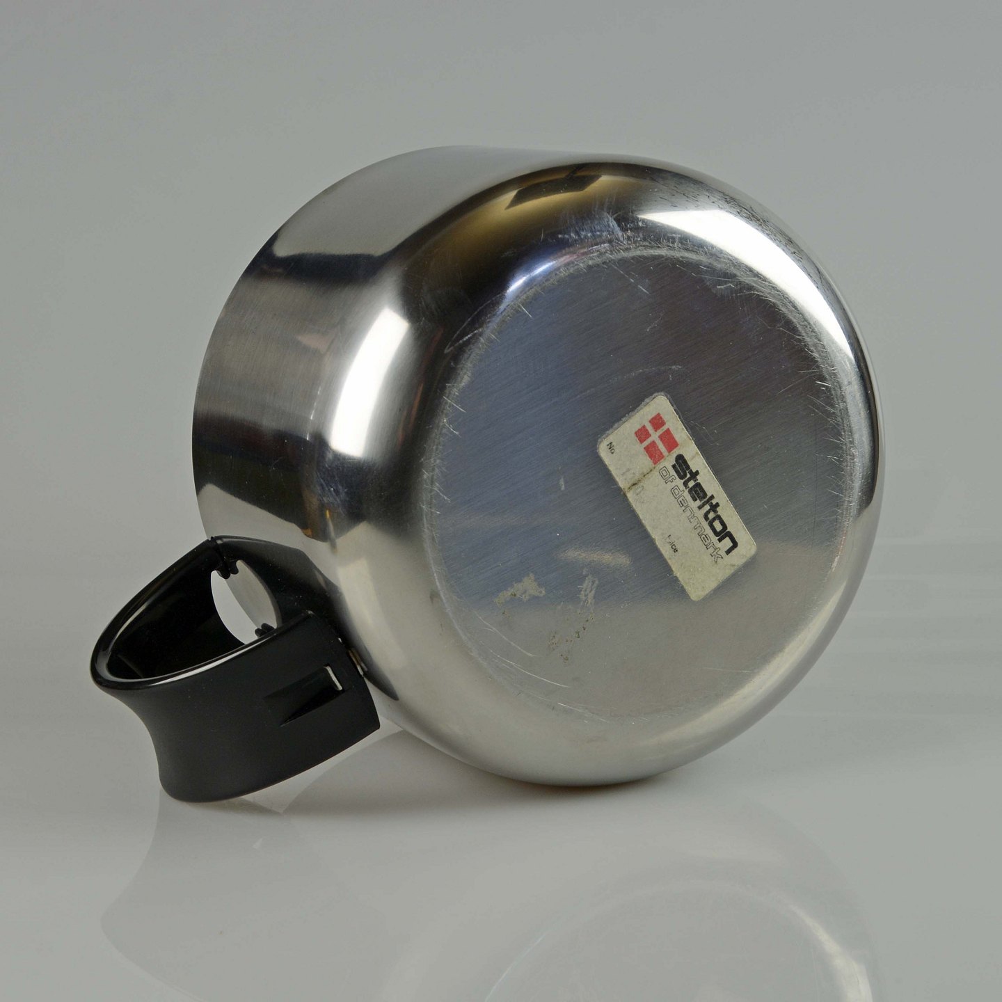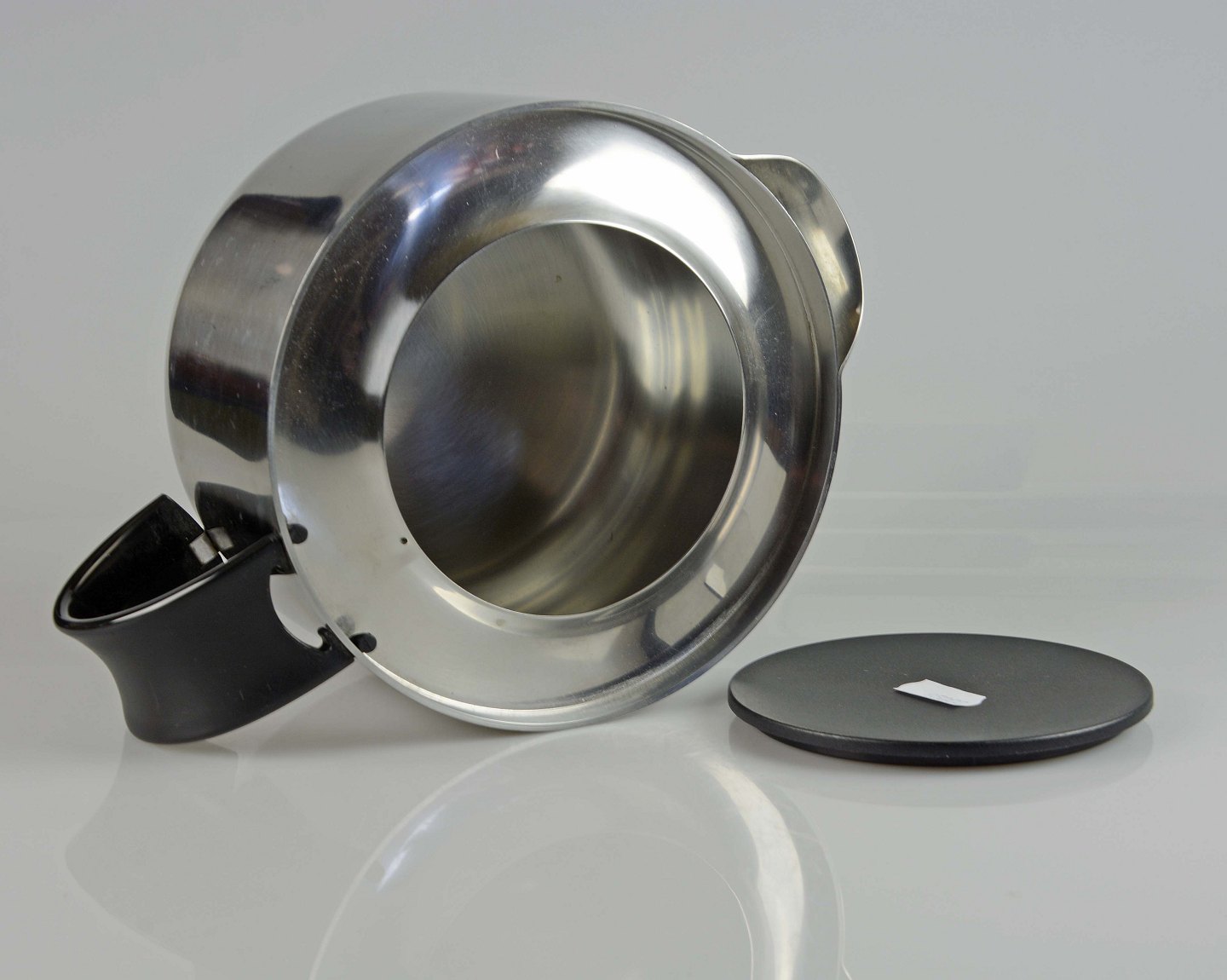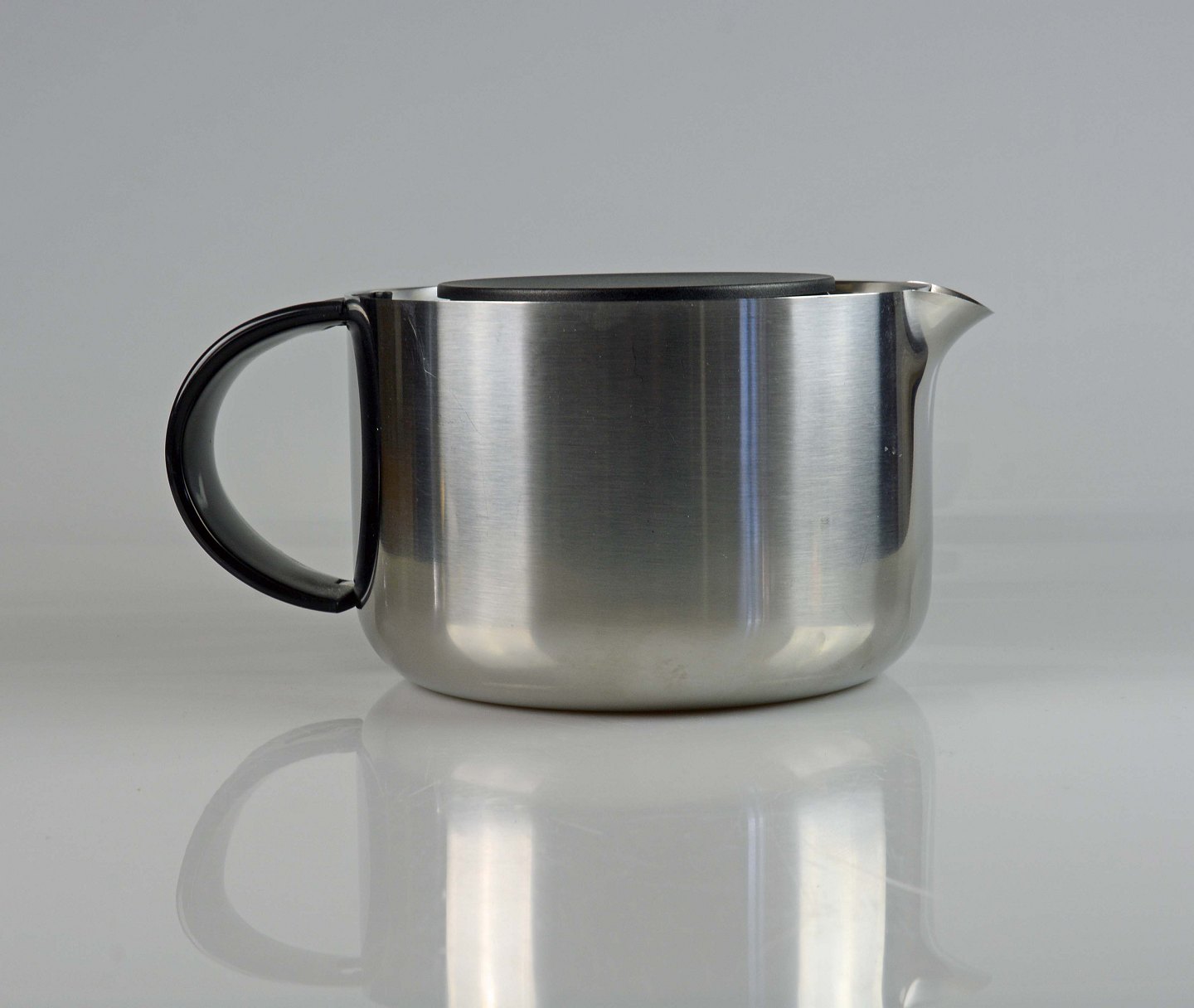 Tekande i rustfrit stål med låg og hank i sort plast