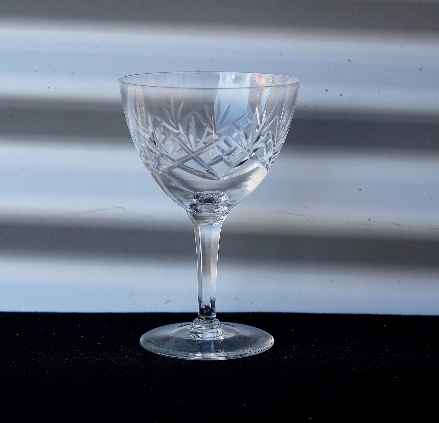 Ulrik glas. Krystalglas, kumme med skærslibning med kryds og facetslebet stilk. Produceret fra 1926-1962