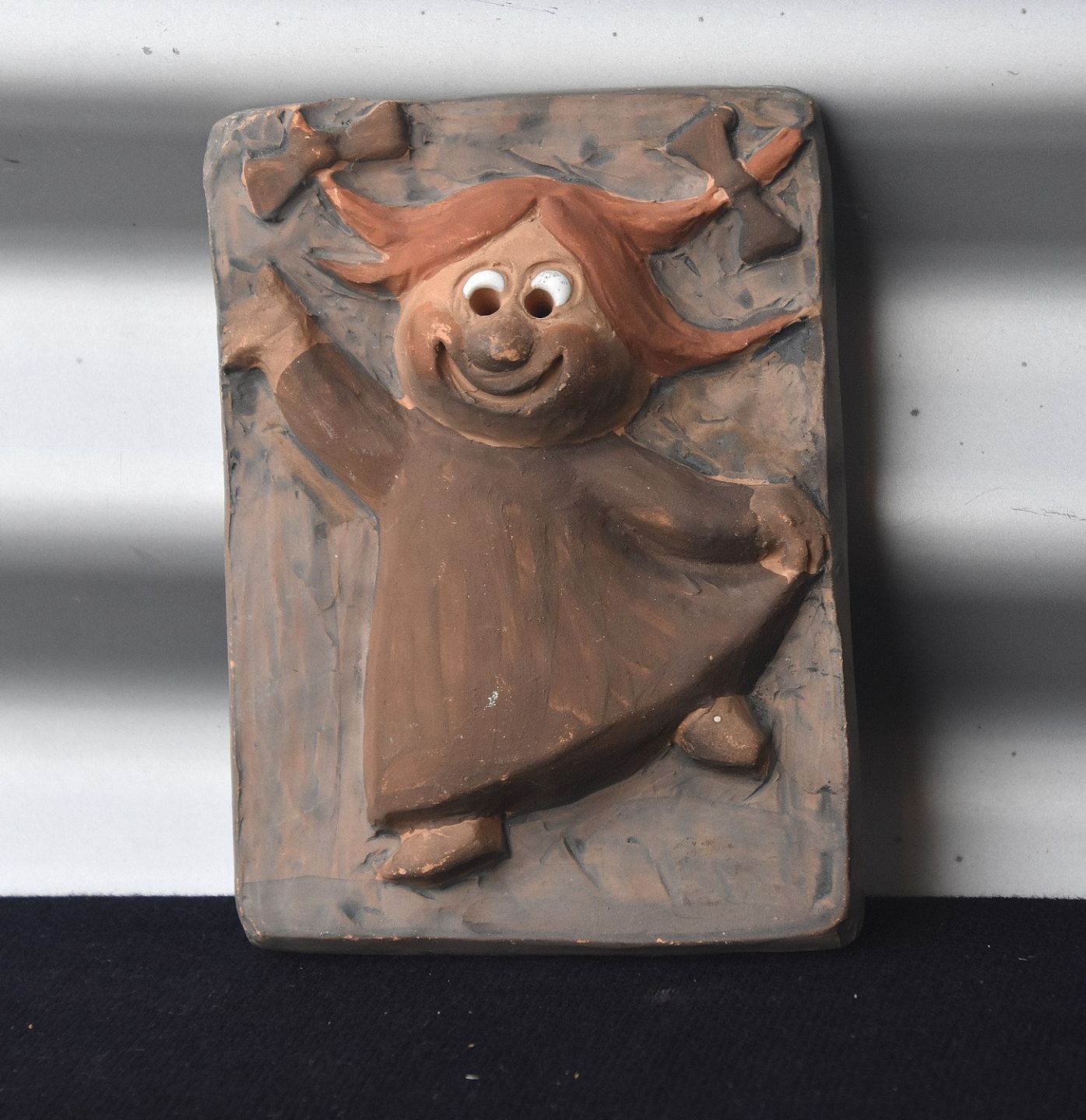 Keramik relief, glad pige med fletninger