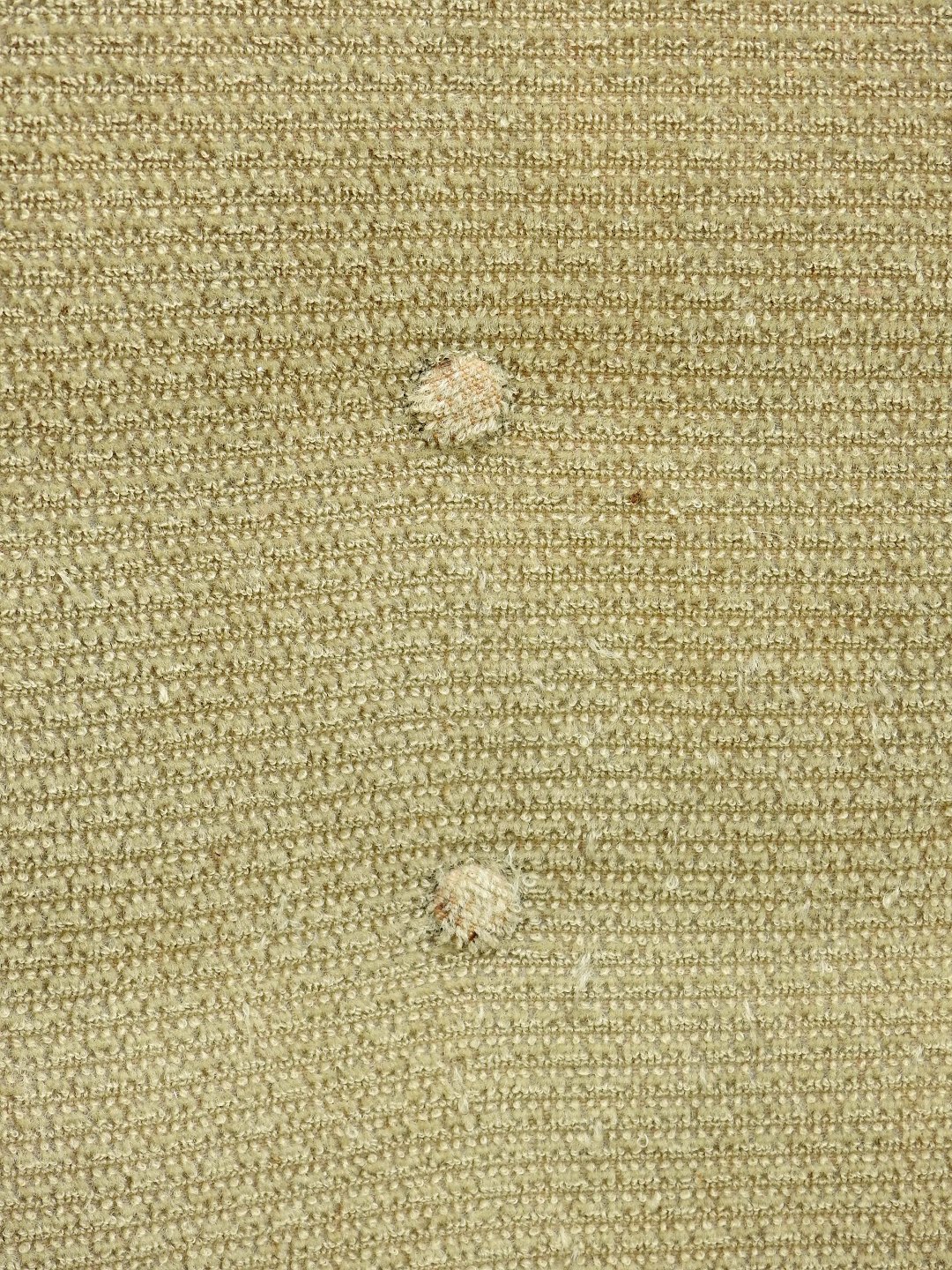 Fremstår med brugsspor på stel, lettere slid på stof i kant af ryglæn mindre hul i stoffet på den ene stol