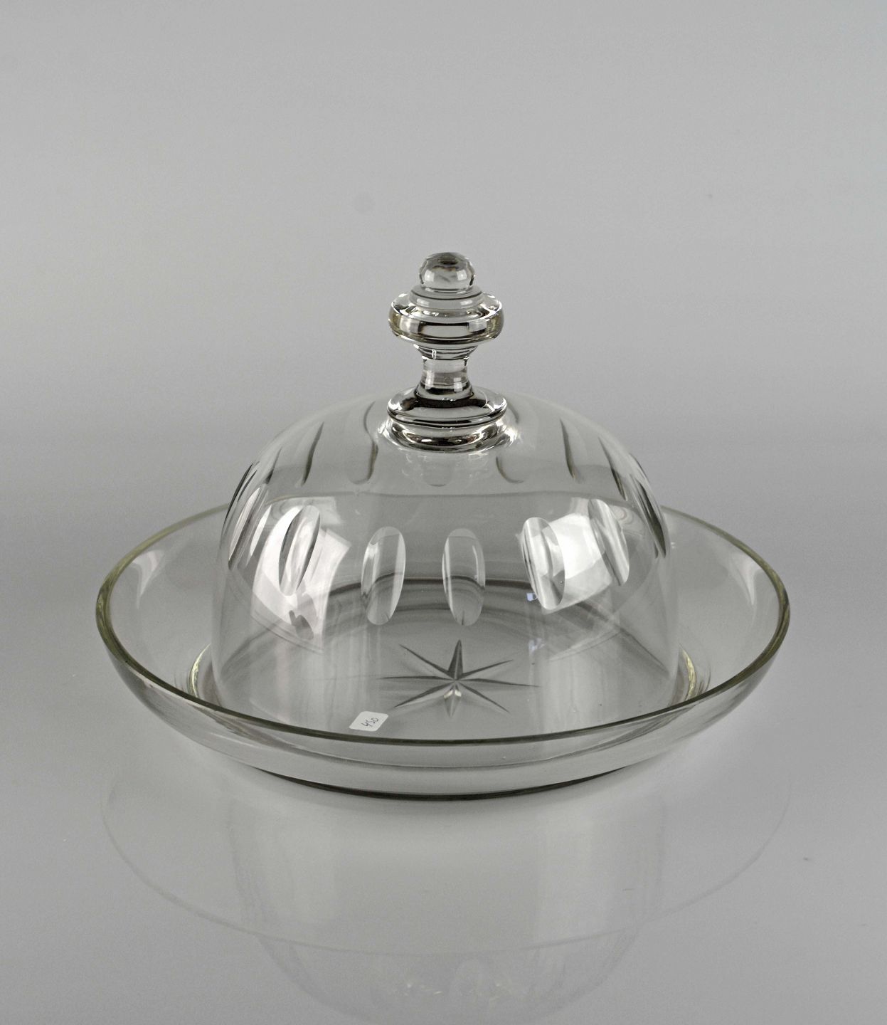 Osteklokke med stjernemotiv i bund.