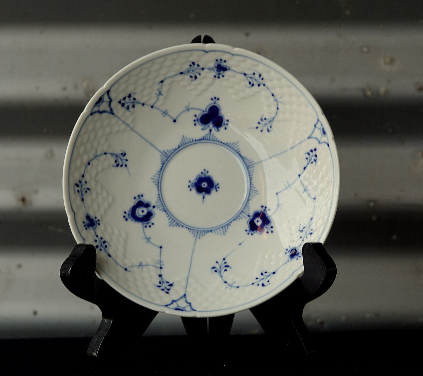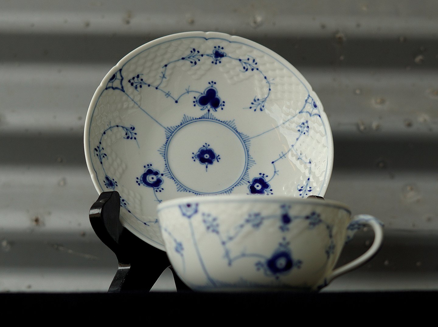Blåmalet tekop med underkop kr 250 pr par, musselmaletservice, kop og underkop nr. 108.
