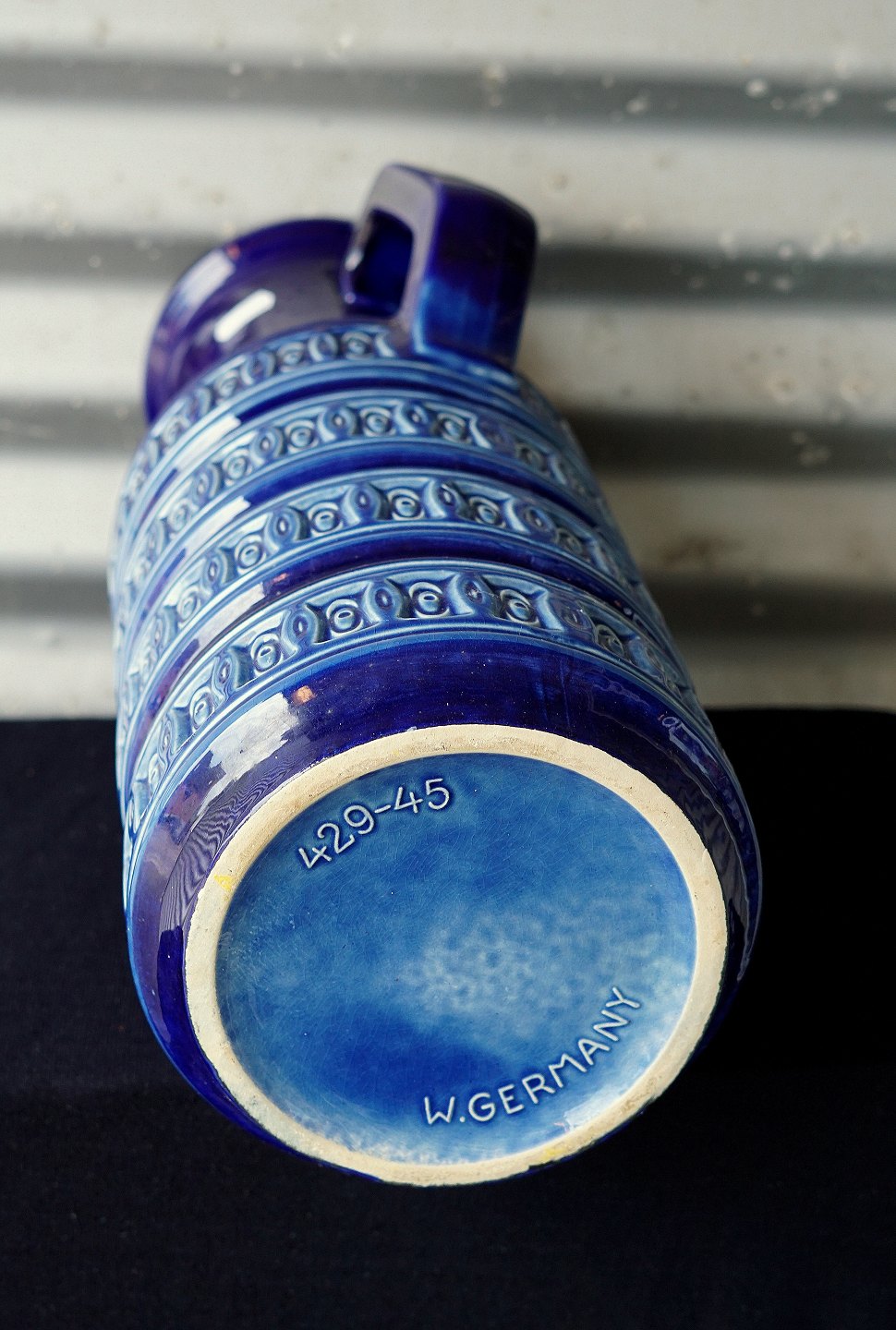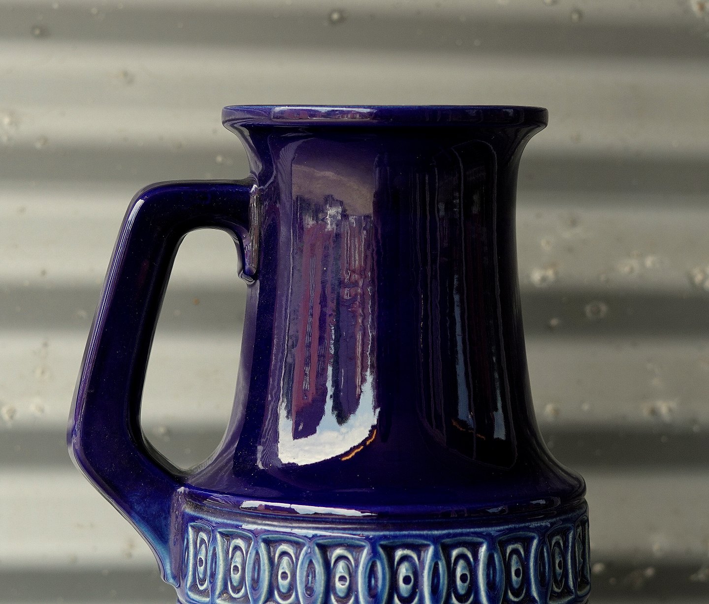 Retro keramik vase fra Scheurich, W. Germany. Gulvvase er med blåt glasur og lavet ca. 1950'erne