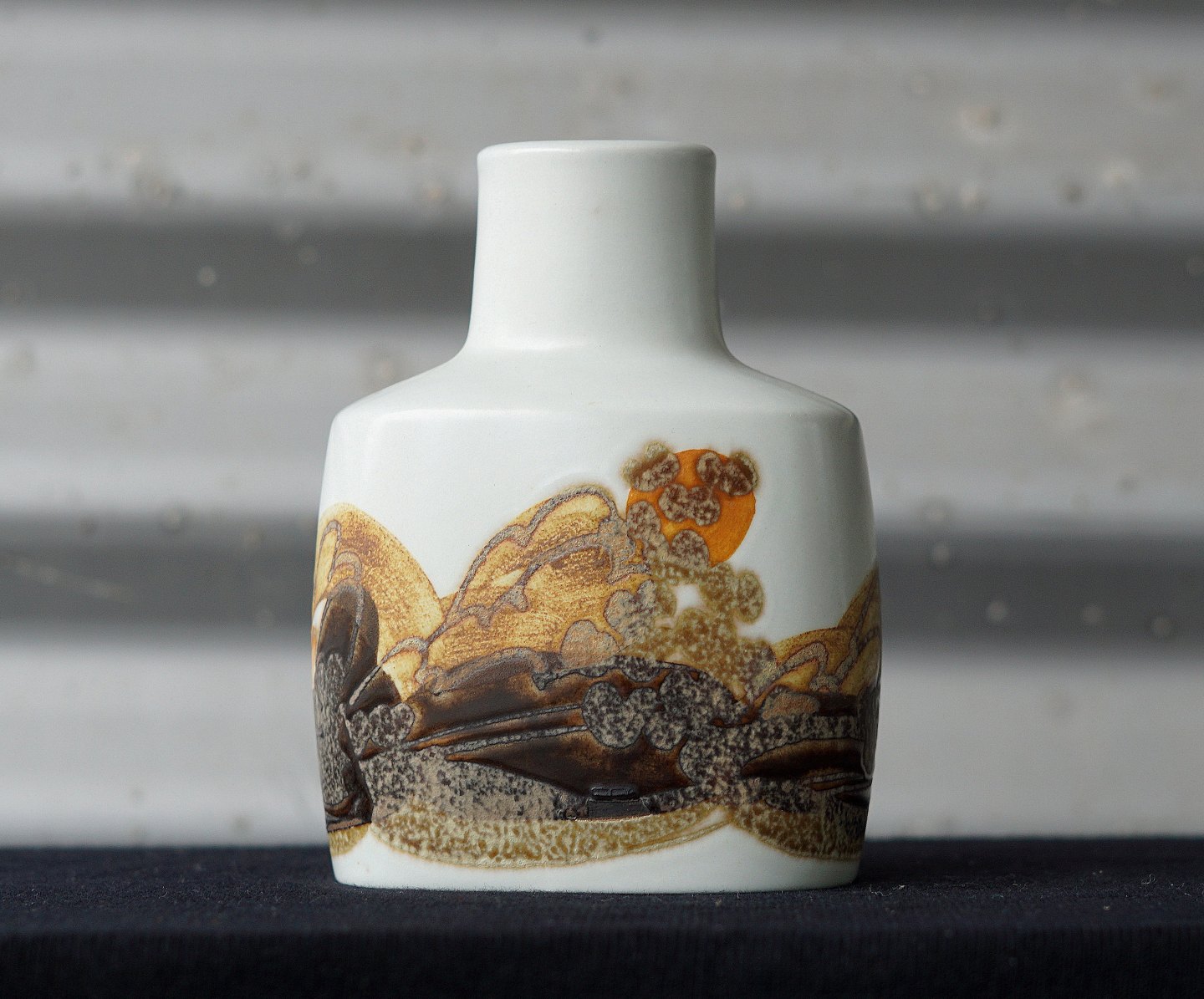 Baca-vase nr. 962/3207. Lille retro vase fra Royal Copenhagen formgivet af Ellen Melmer, der har dekoreret en del ting i 70'erne med gule, brune og orangefarver