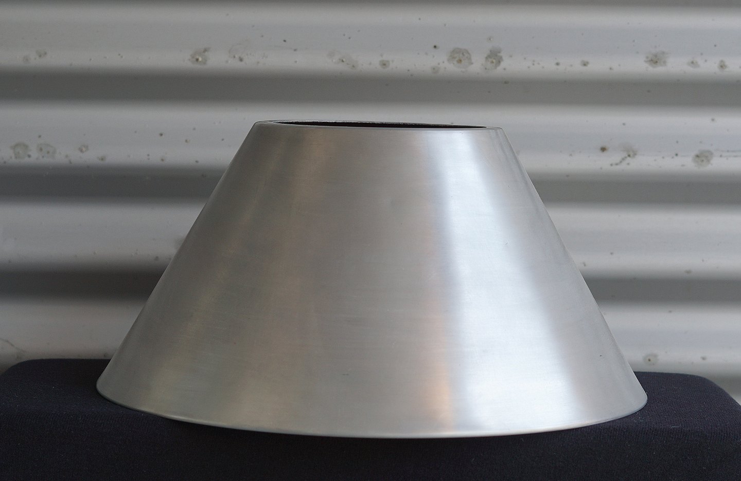 Bordlampe med stålskærm, skærmen er aftagelig. Lampefoden er mat sort lakeret, skærmen er børstet stål
