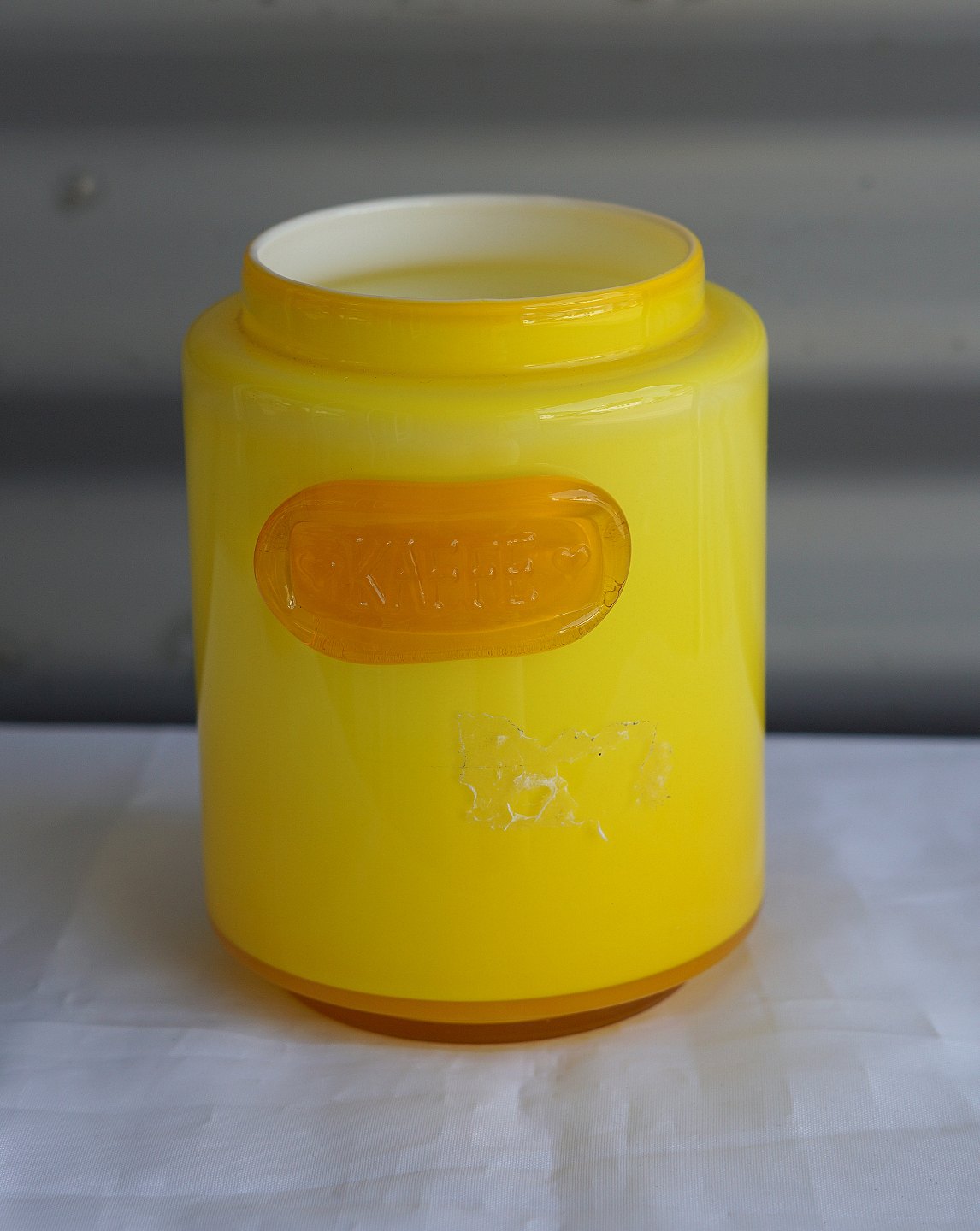 Palet-serien, gul kaffekrukke, med tætsluttende låg.