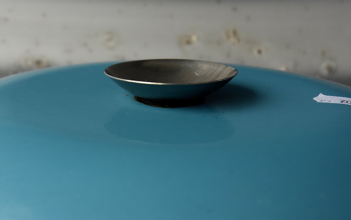 Der er en lille smugle spor af afslag i emaljen, nederst på gryden