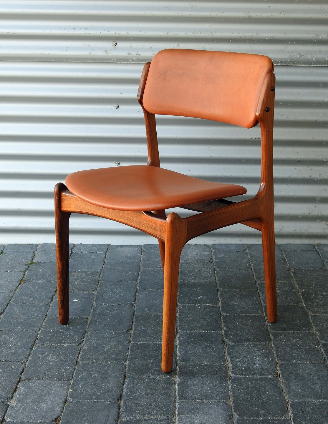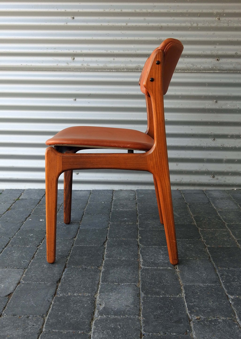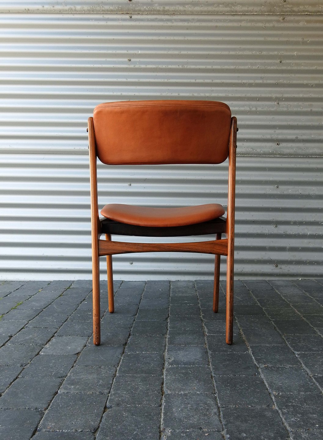 Fire styk spisebordsstole i palisander med polstret sæder betrukket med cognacfarvet læder