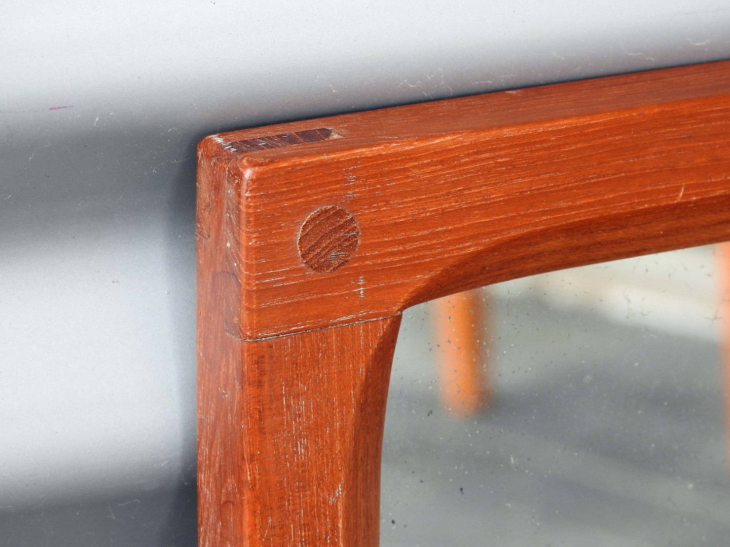 Spejl med ramme af teaktræ med enkelte detaler ved hjørnerne