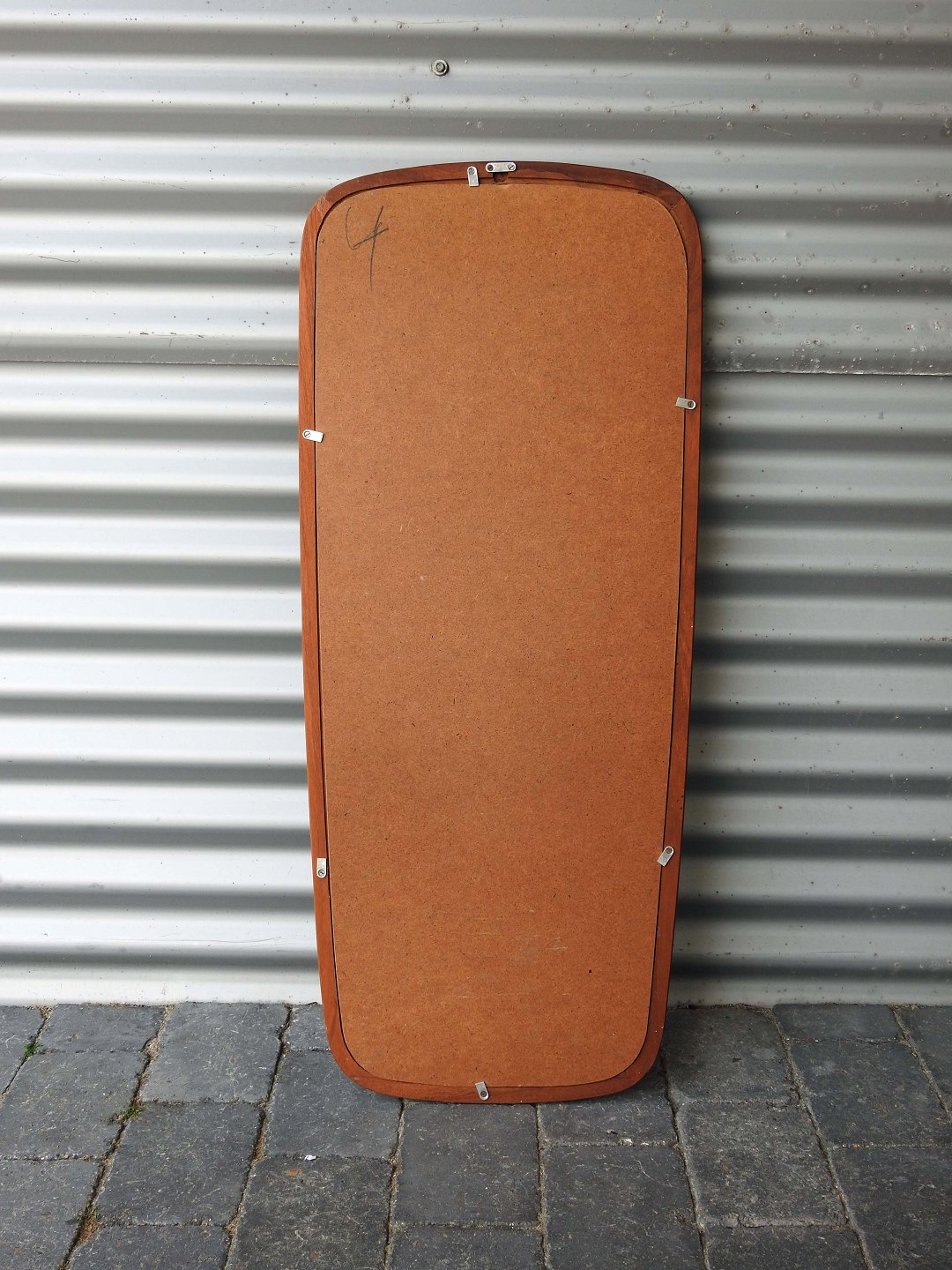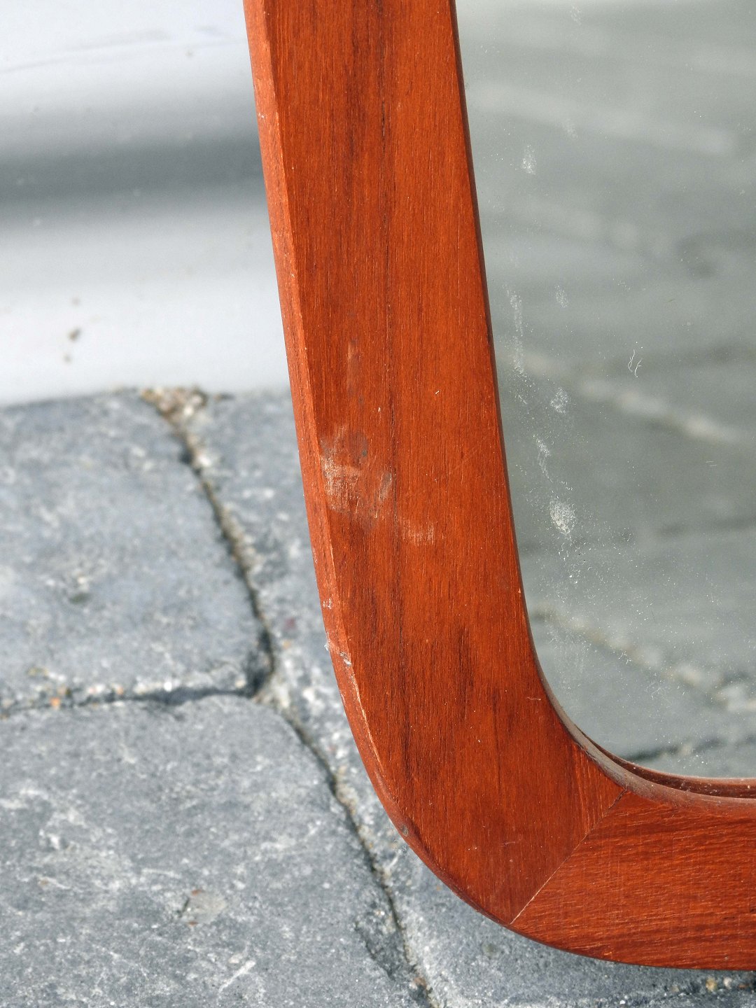 Spejl med ramme af teaktræ med afrundede hjørner