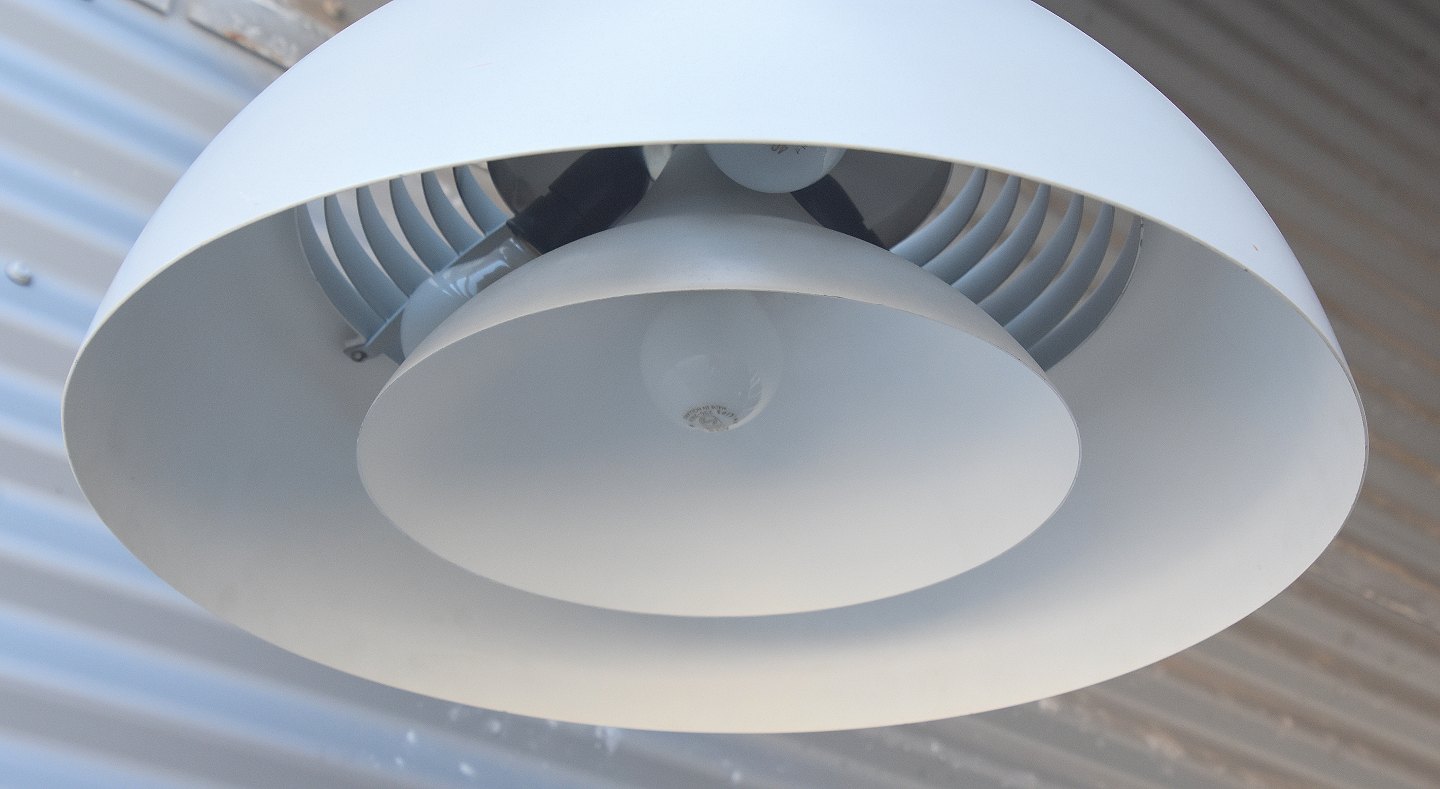 Producent Louis Poulsen. Den har lidt slidspor i lak.
