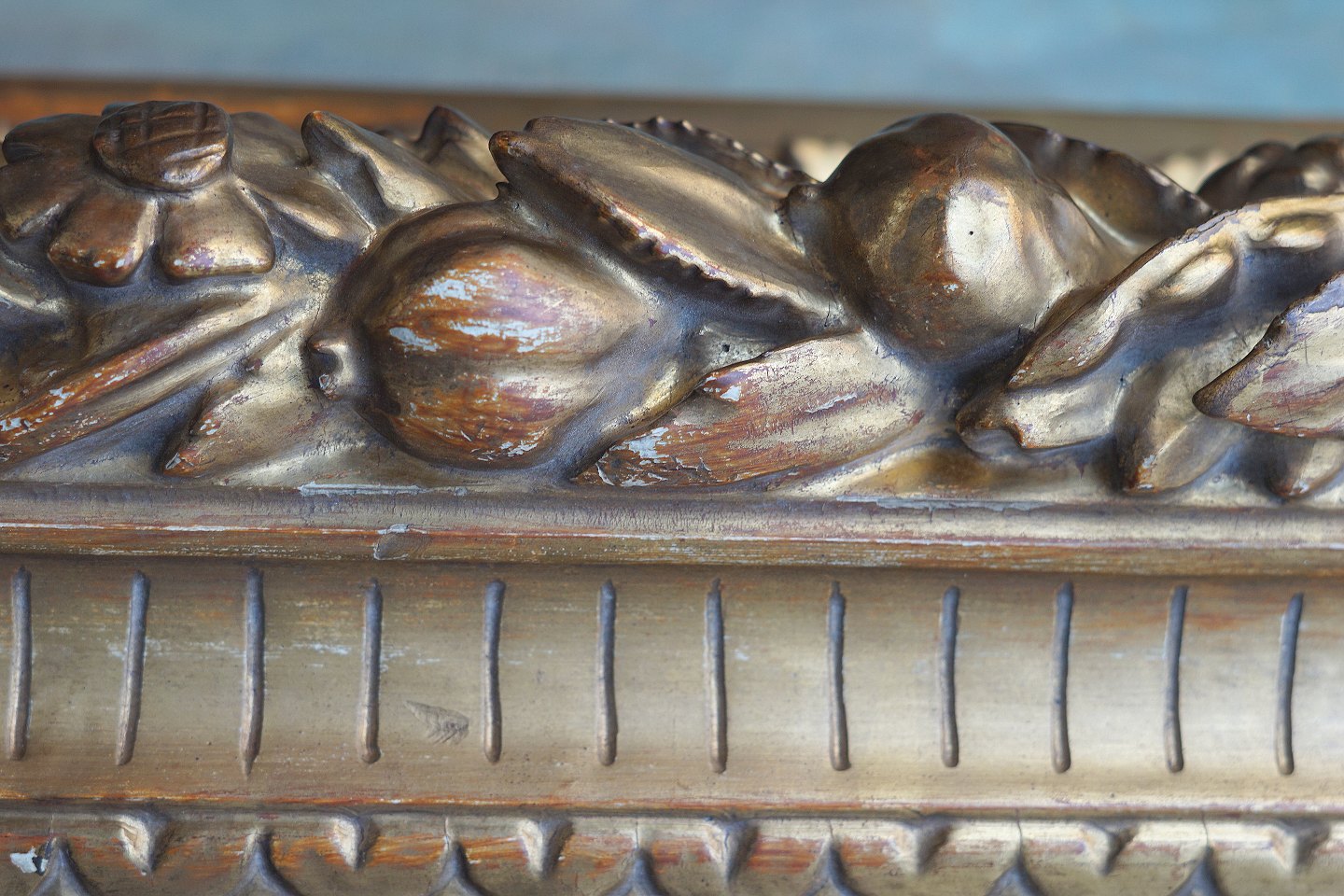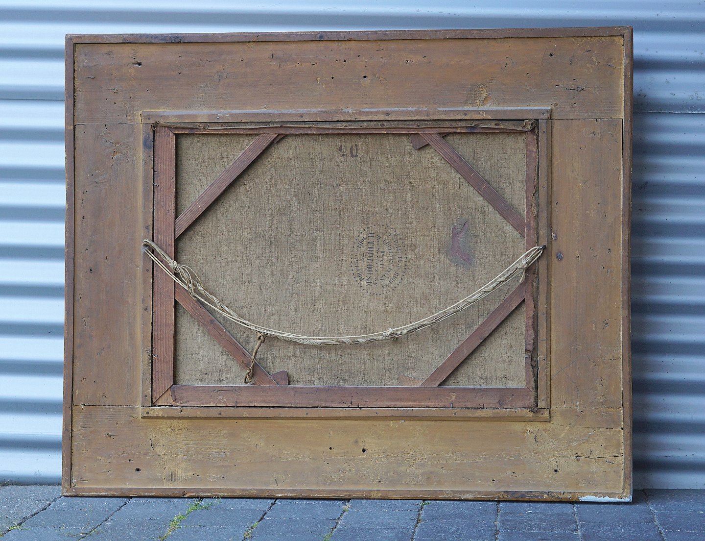 Molemiljø, med små og store skibe i vandet. Maleri, olie på lærred