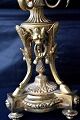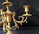 Antik 5-armet messing lysestage/kandelaber med aftagelige lysmanchetter. Stagen frem står med patina