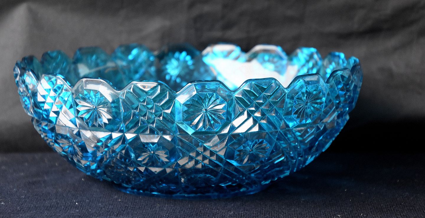 Glas, blåt glas, presset glas, skærslibning