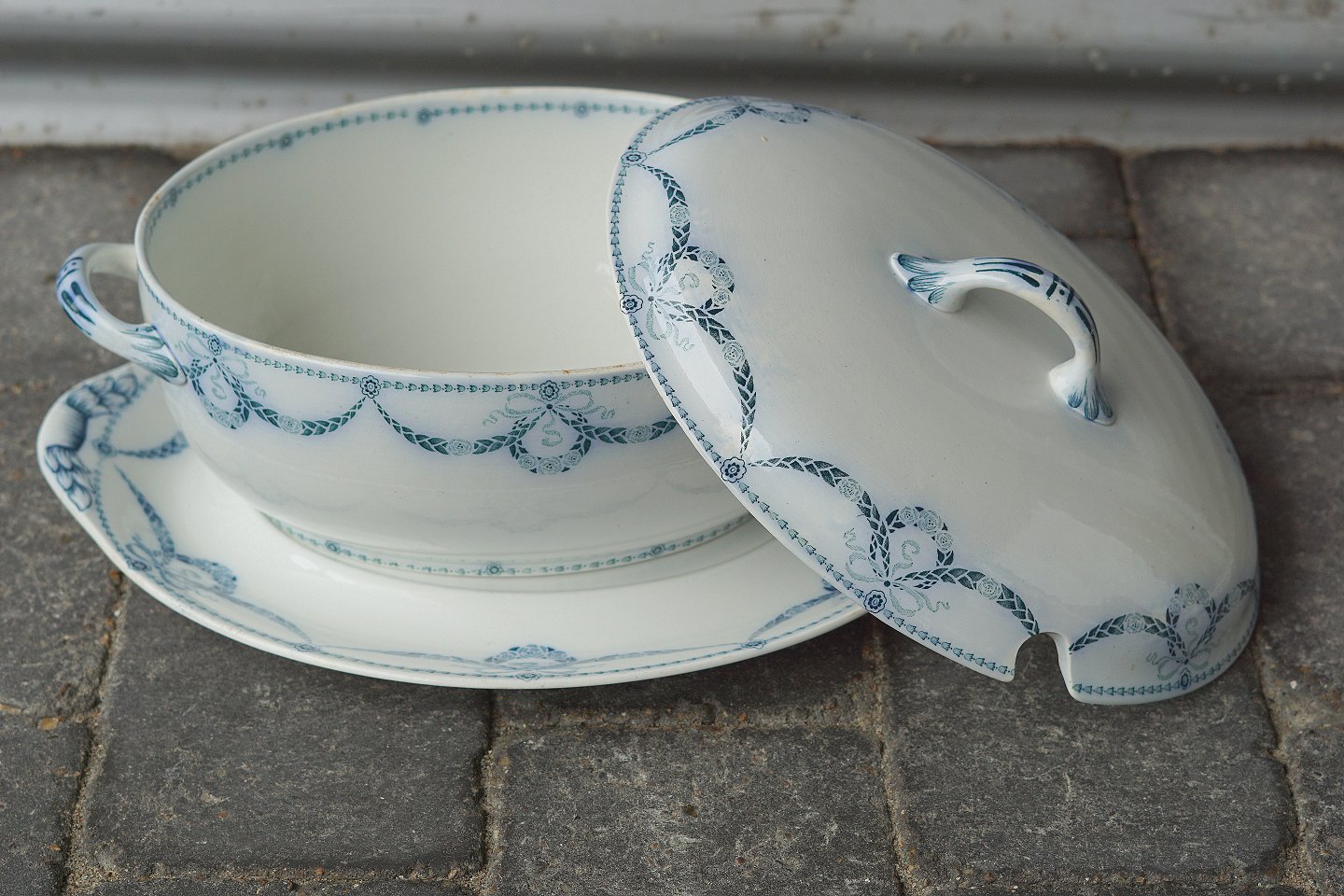 Hannibal, fajance, låg terrine med underfad. Art Deco