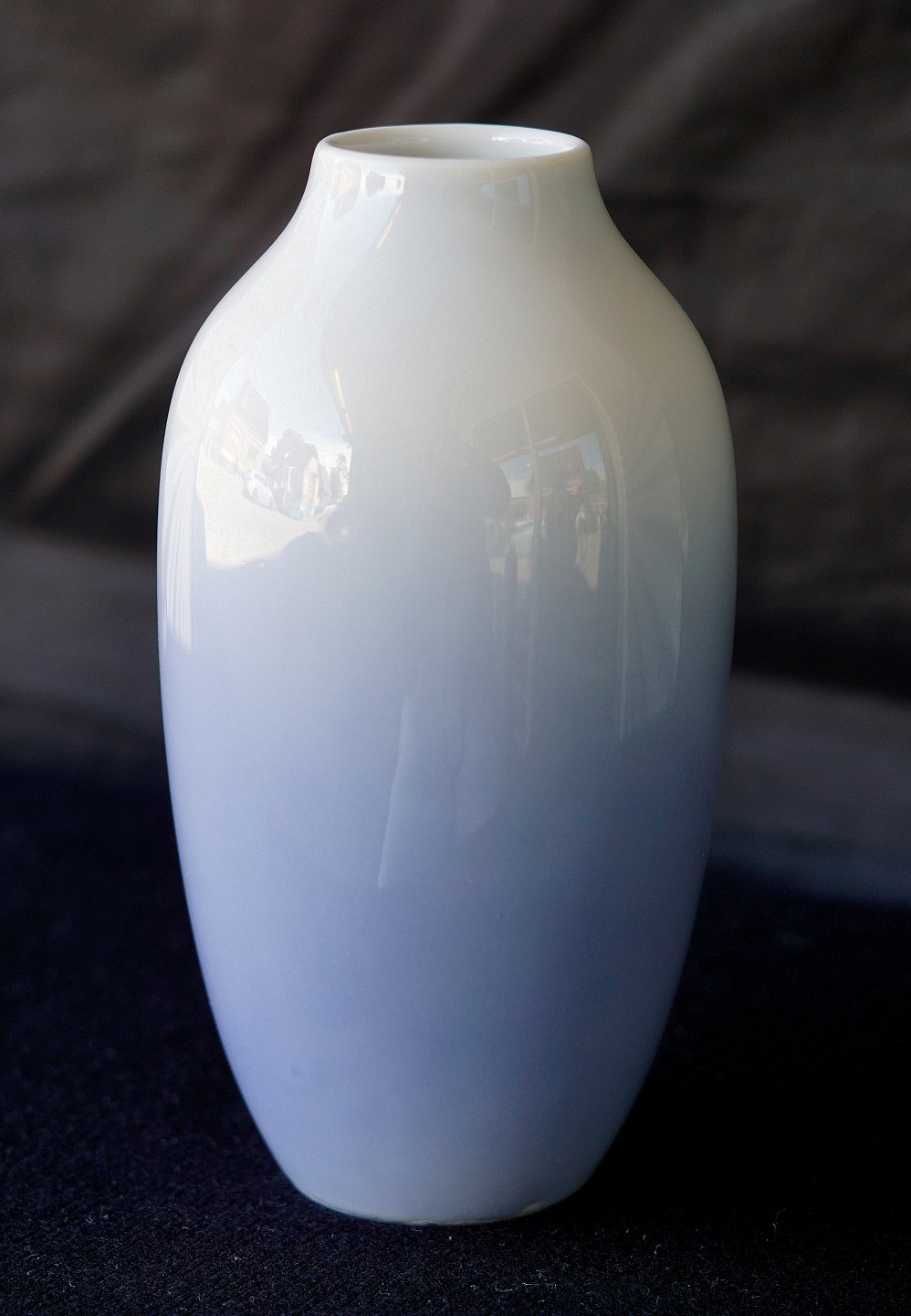 Royal Copenhagen, vase 1910/239. Art Nouveau vase med blå trompet blomster