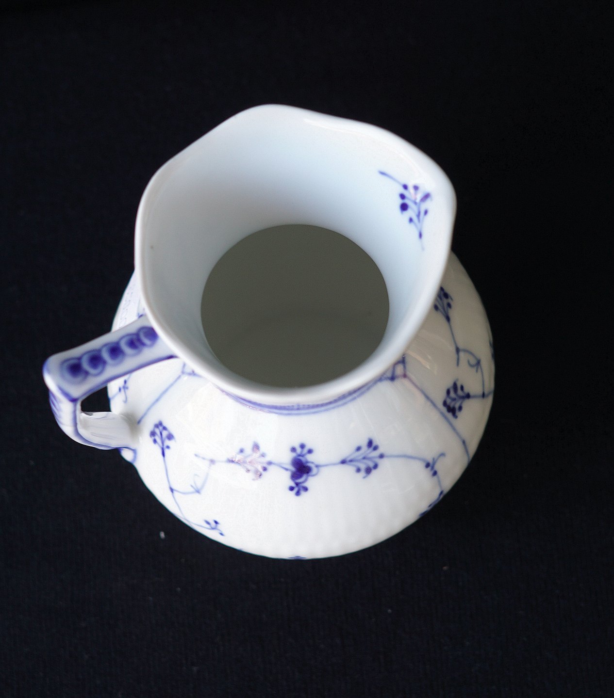 Royal Copenhagen, RC, Den Kongelige Porcelænsfabrik, KGL., kande, musselmalet, riflet, porcelæn