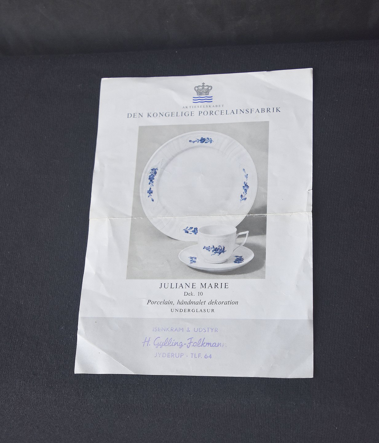 Juliane Marie, blåblomstret. Stellet er navne givet efter Den Kongelige Porcelænsfabrik, grundlægger og mæcen: Enkedronning Juliane Marie