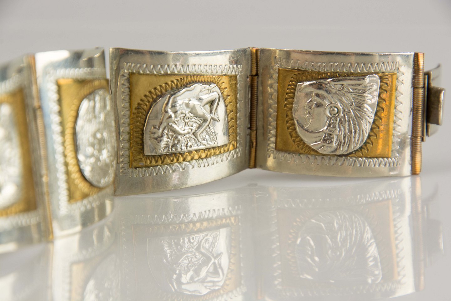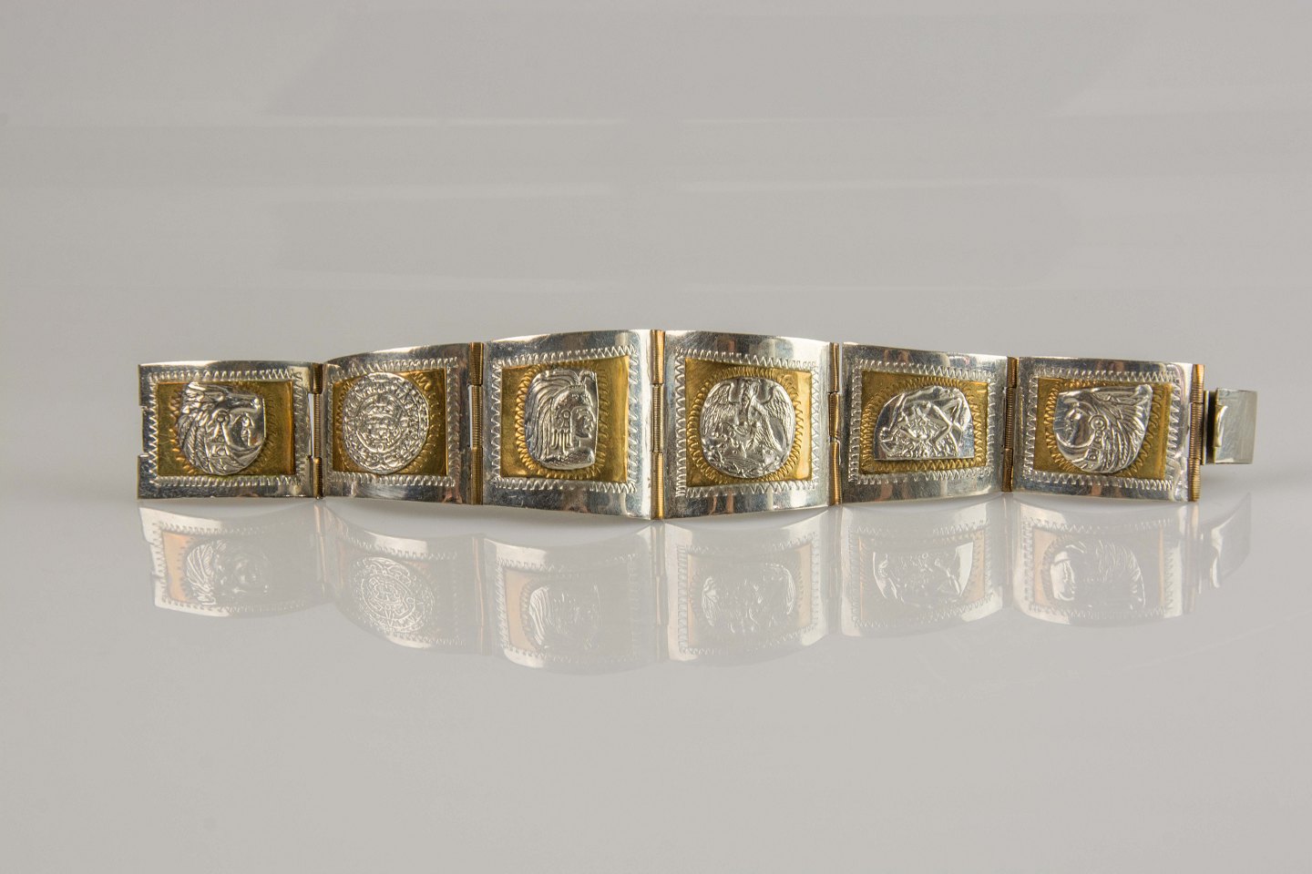 Armbånd med inka motiver i guldbelagt indramning