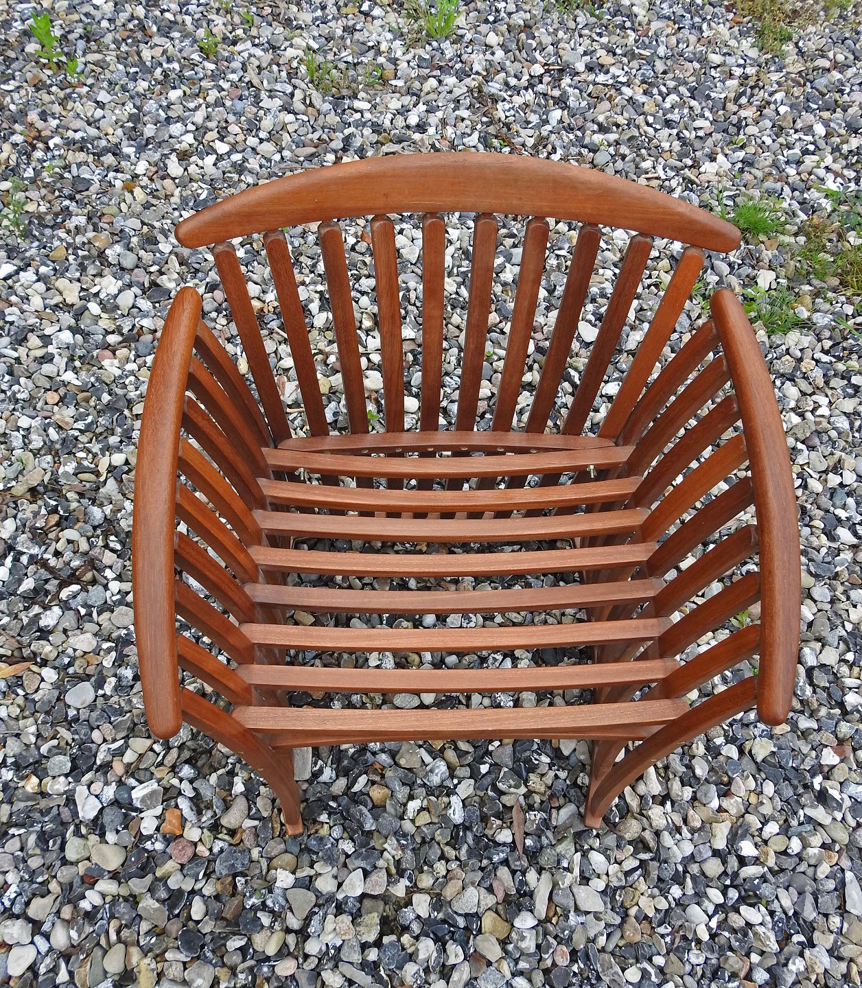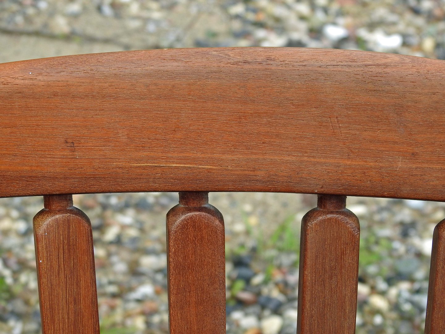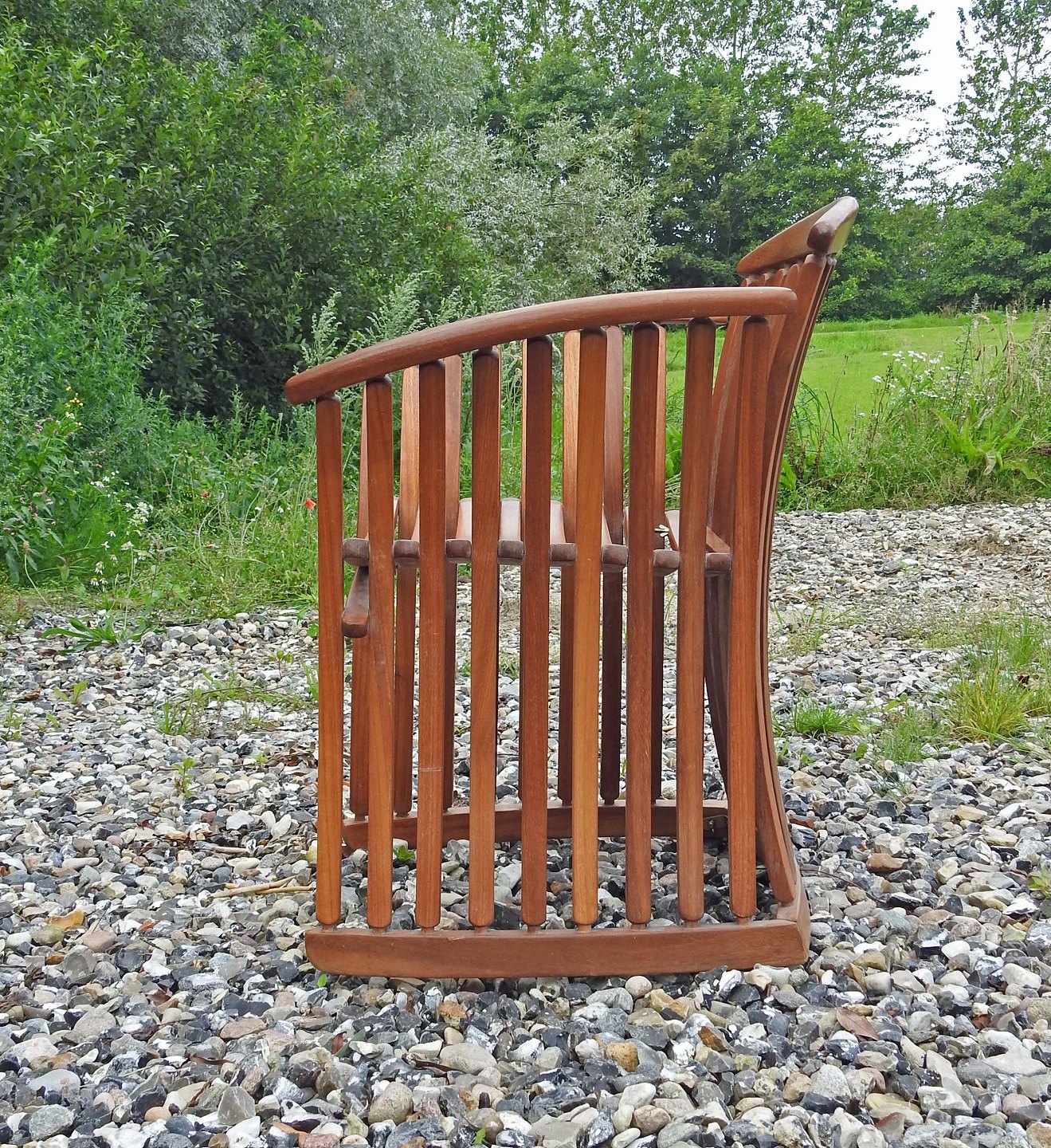 Armstol med tremmer i teaktræ i dansk møbeldesign
