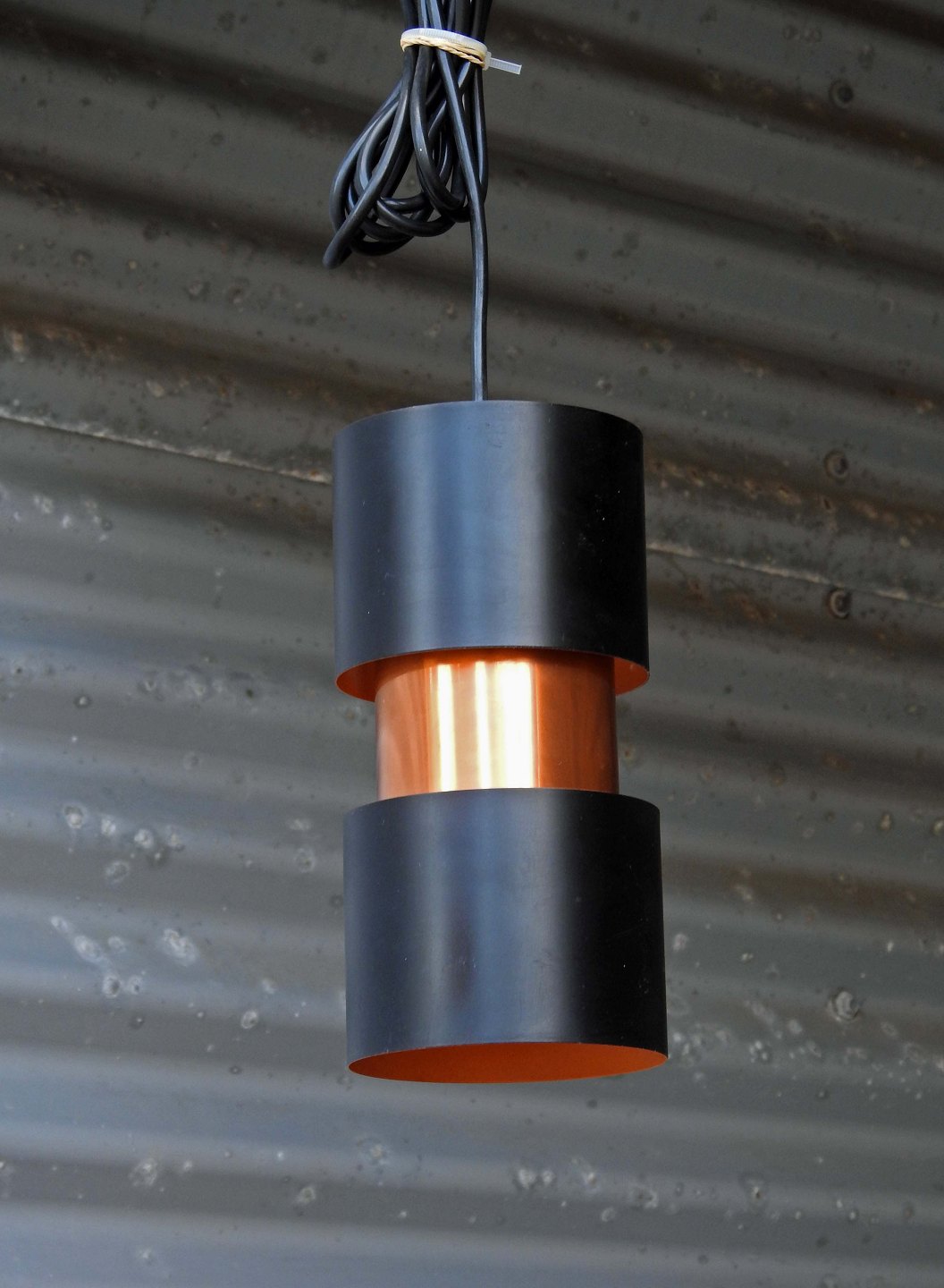 Loftspendel Tubular med aluminium skærm i sort og kobber