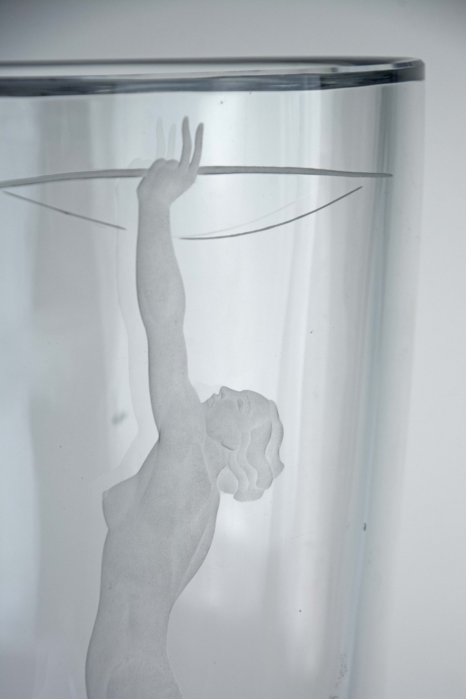 Orrefors vase, Vicke Lindstrand vase, Orrefors glas, glasvase, indgraveret vase, indgraveret glas