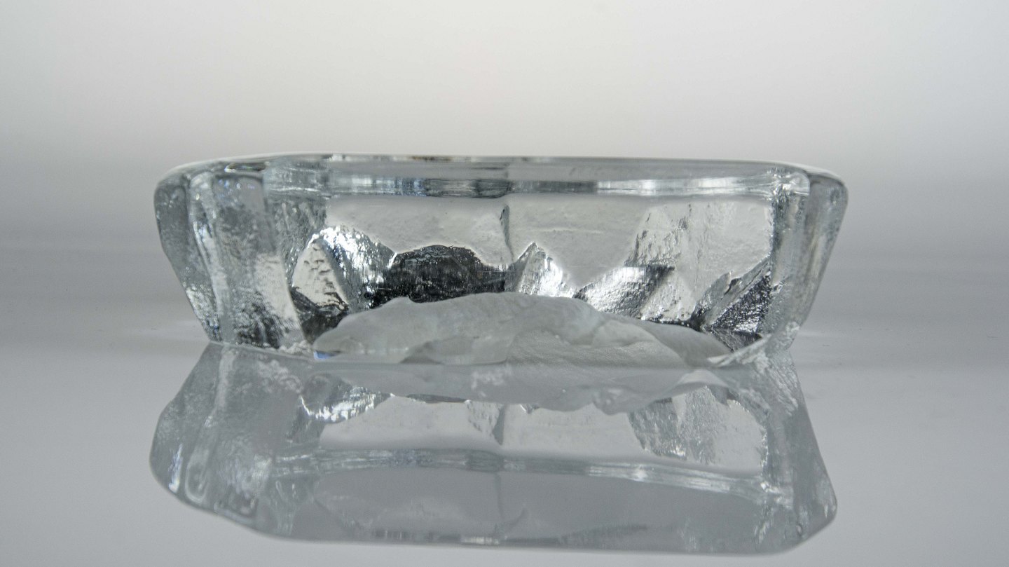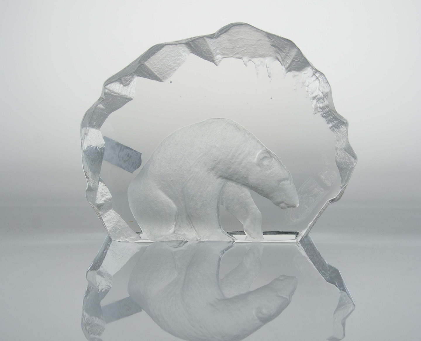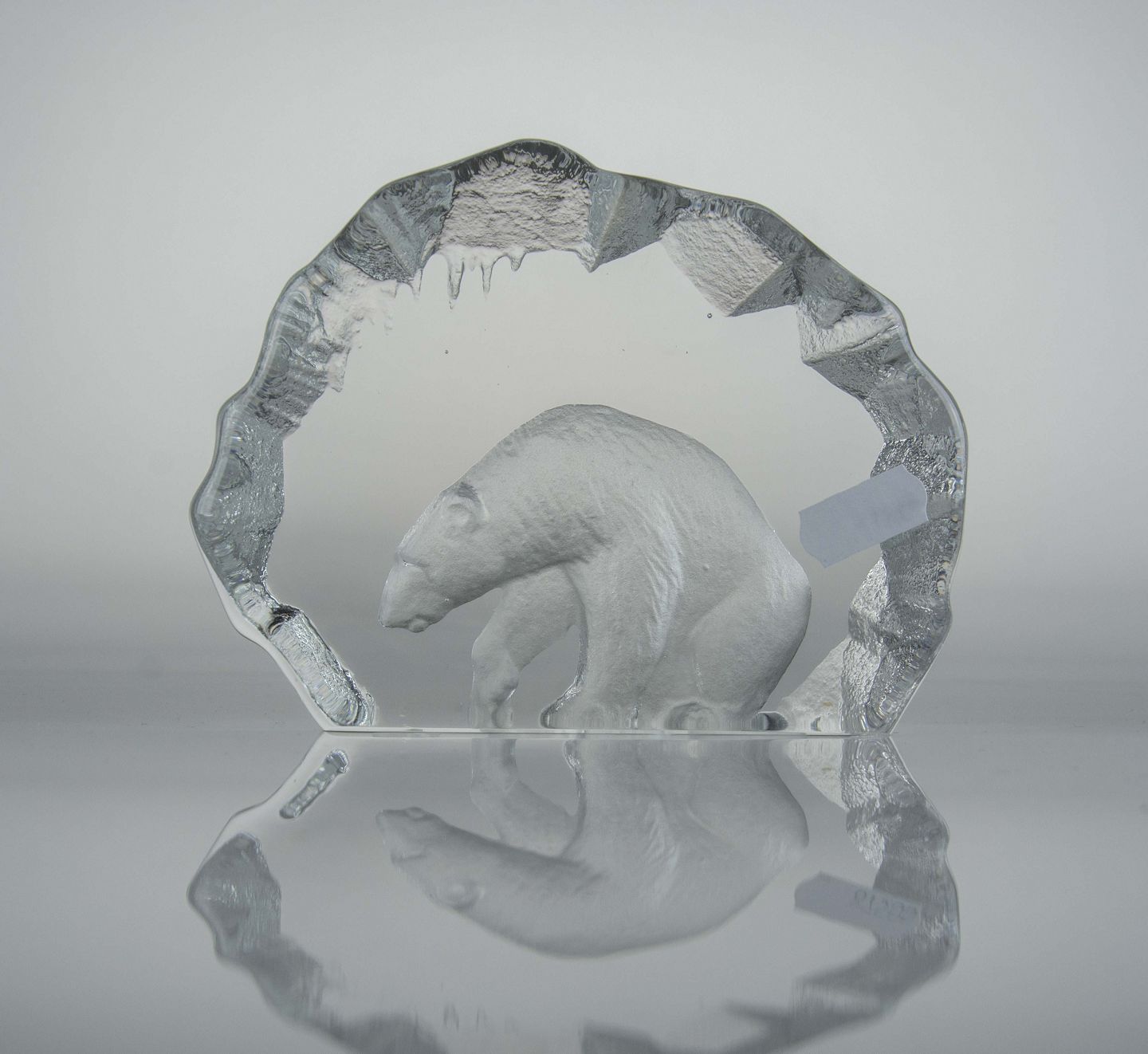 Svensk figur i glas med indgraveret motiv af en isbjørn