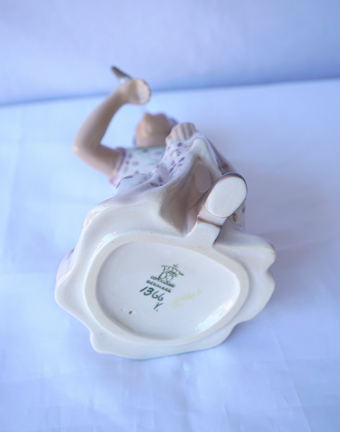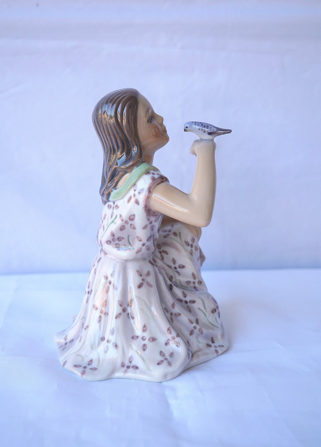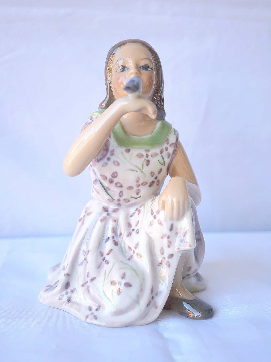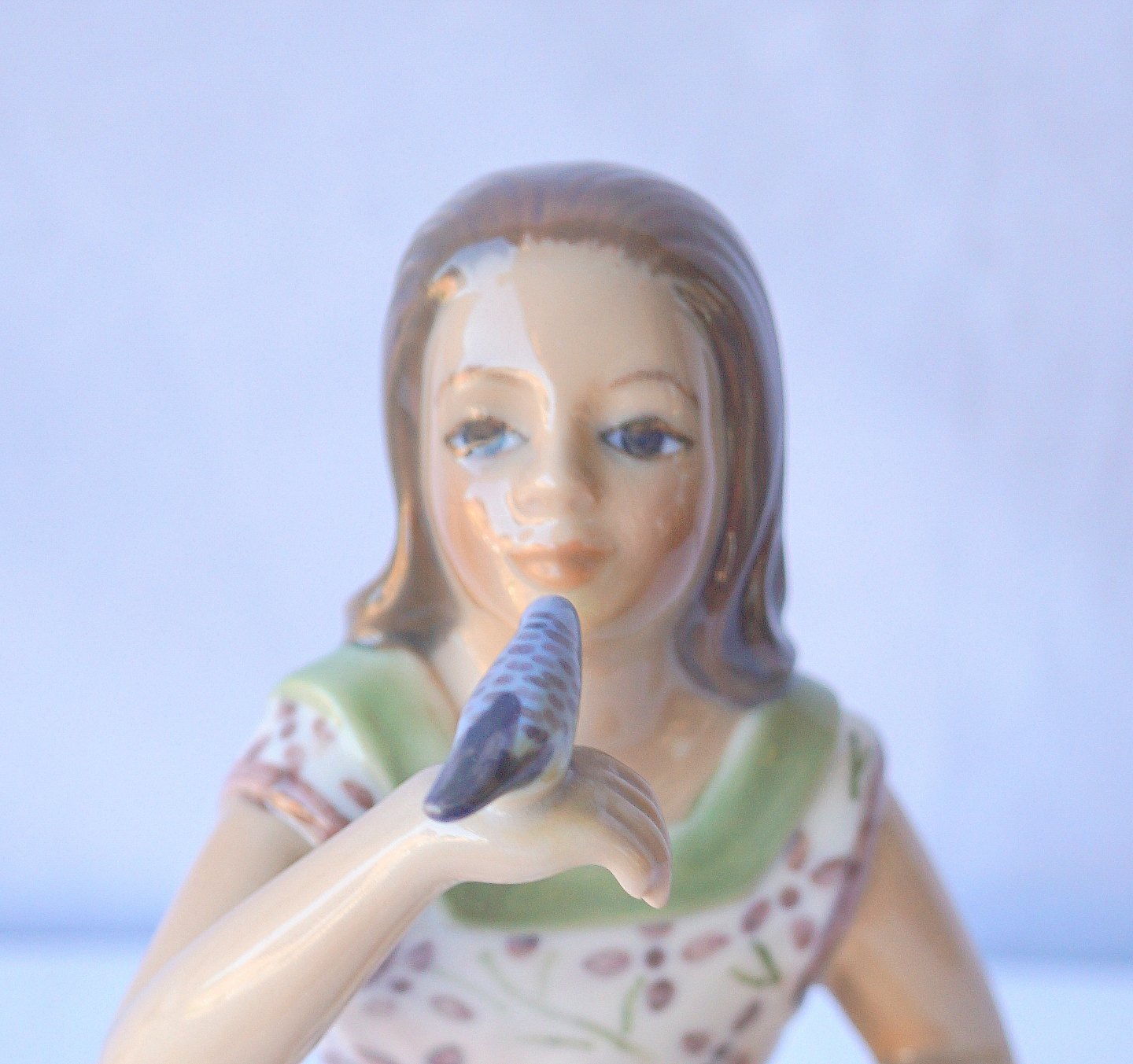 Dahl Jensen figur, Pige med fugl nr. 1366, Anne, porcelæn figuren er 1. sortering