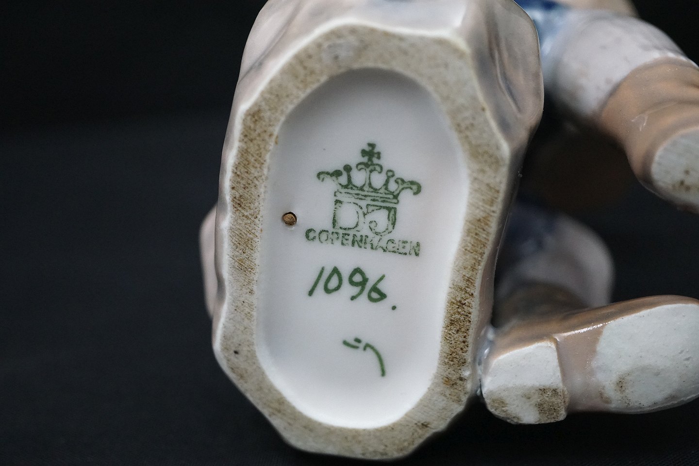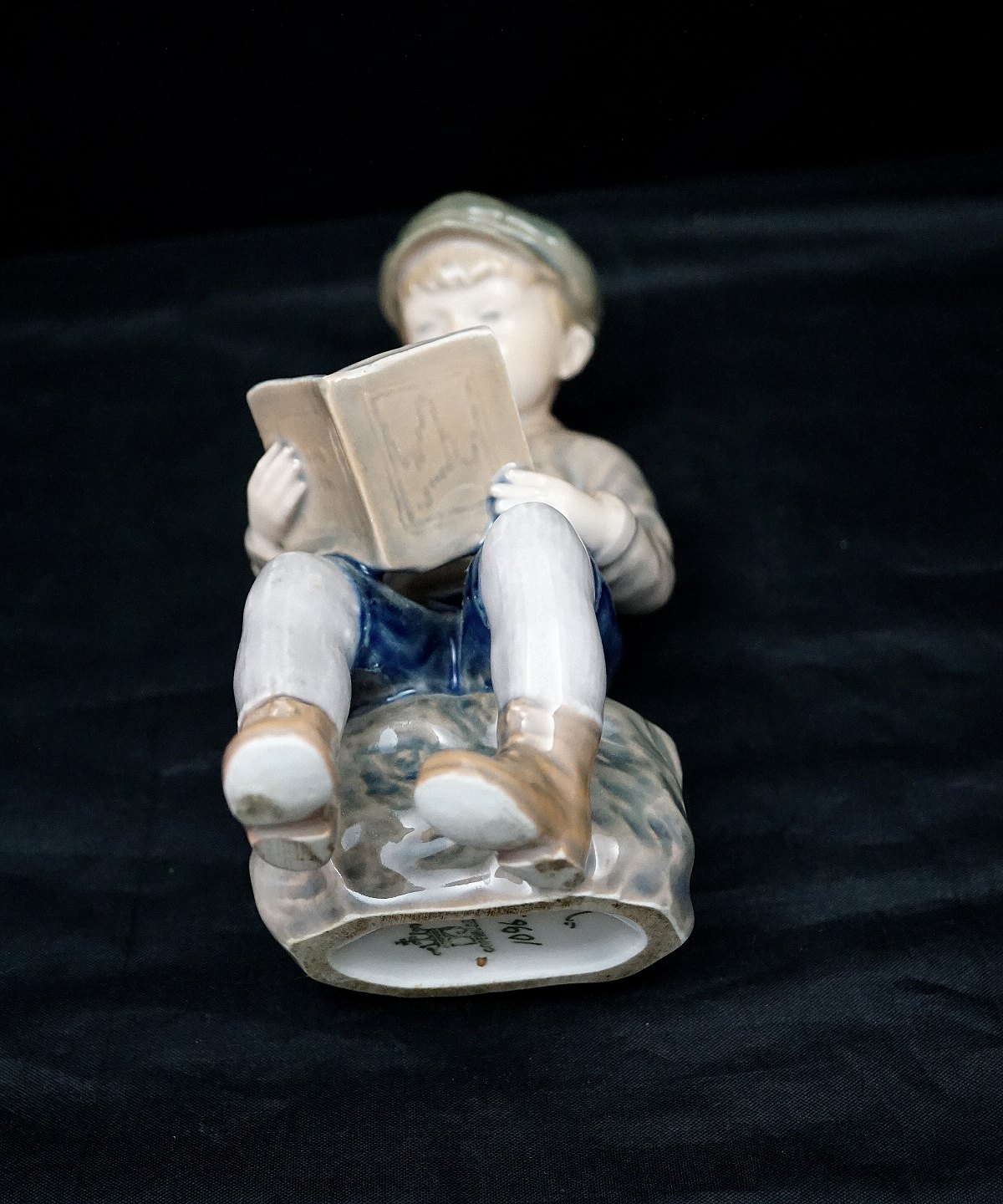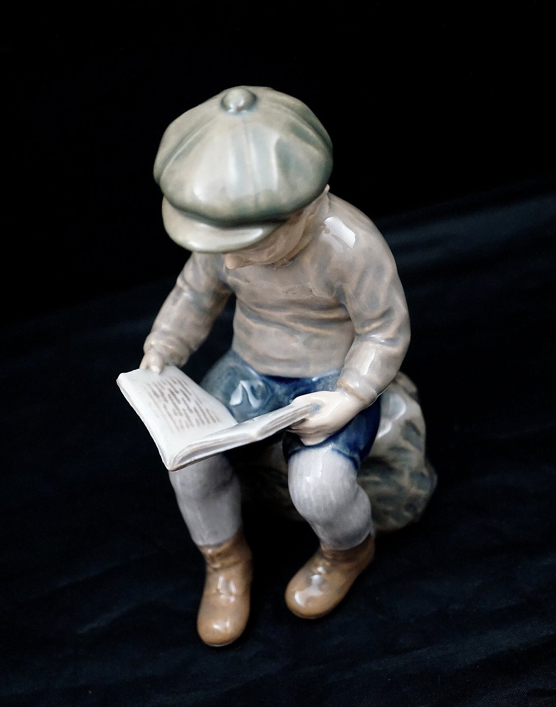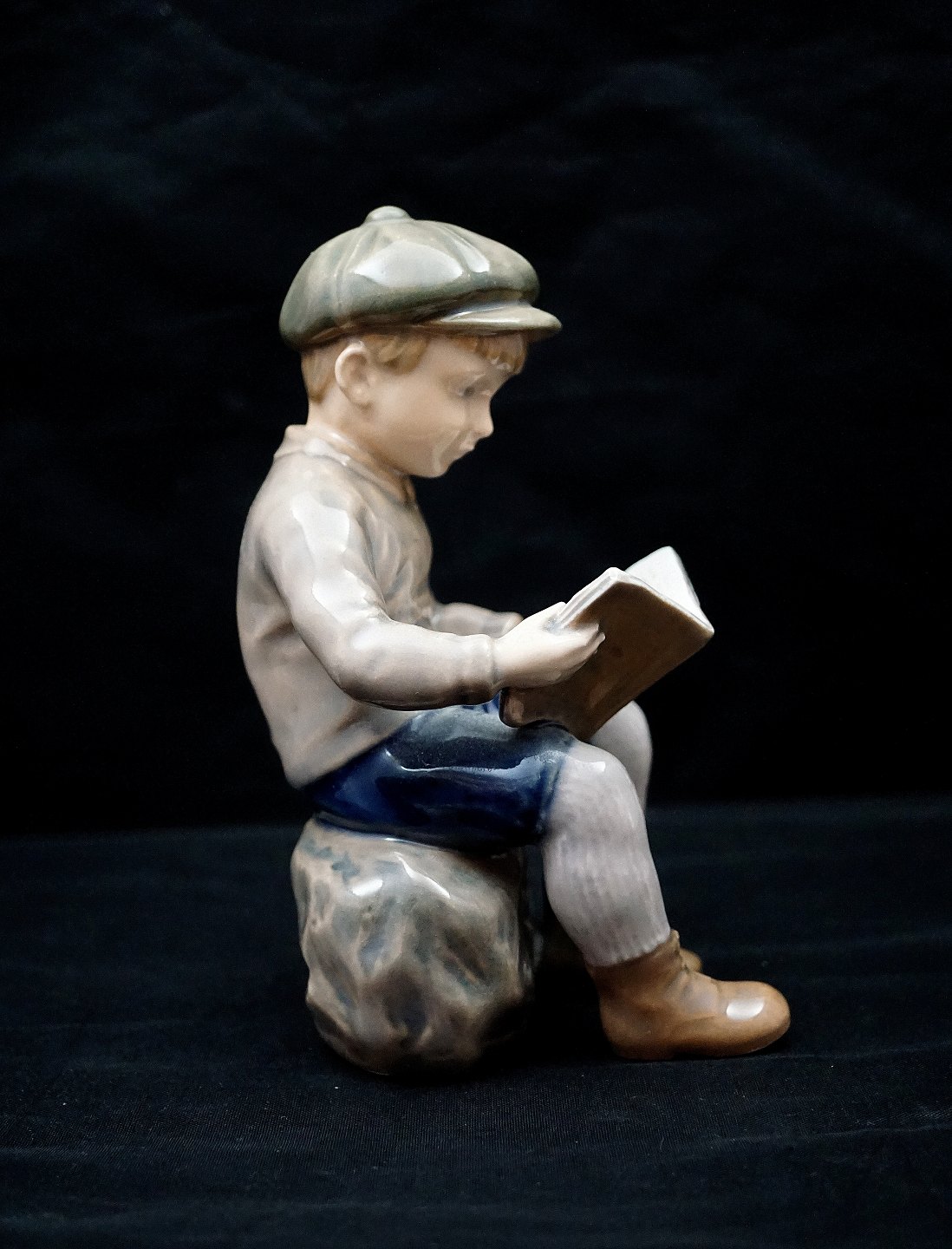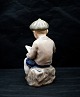 Dahl Jensen figur, Læsende Dreng, nr. 1096. Porcelænsfiguren er i 1. Sortering. Dreng med stor hat læser bog.