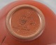 Rød, buttet vase med lille hul til blomst. Vasen er af keramik
