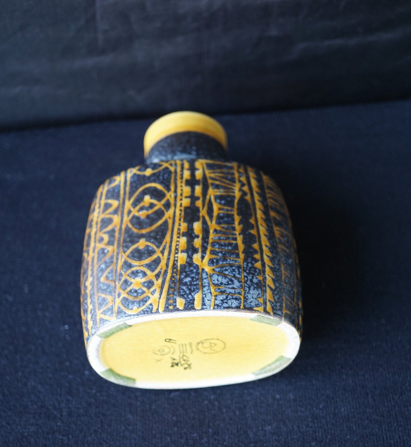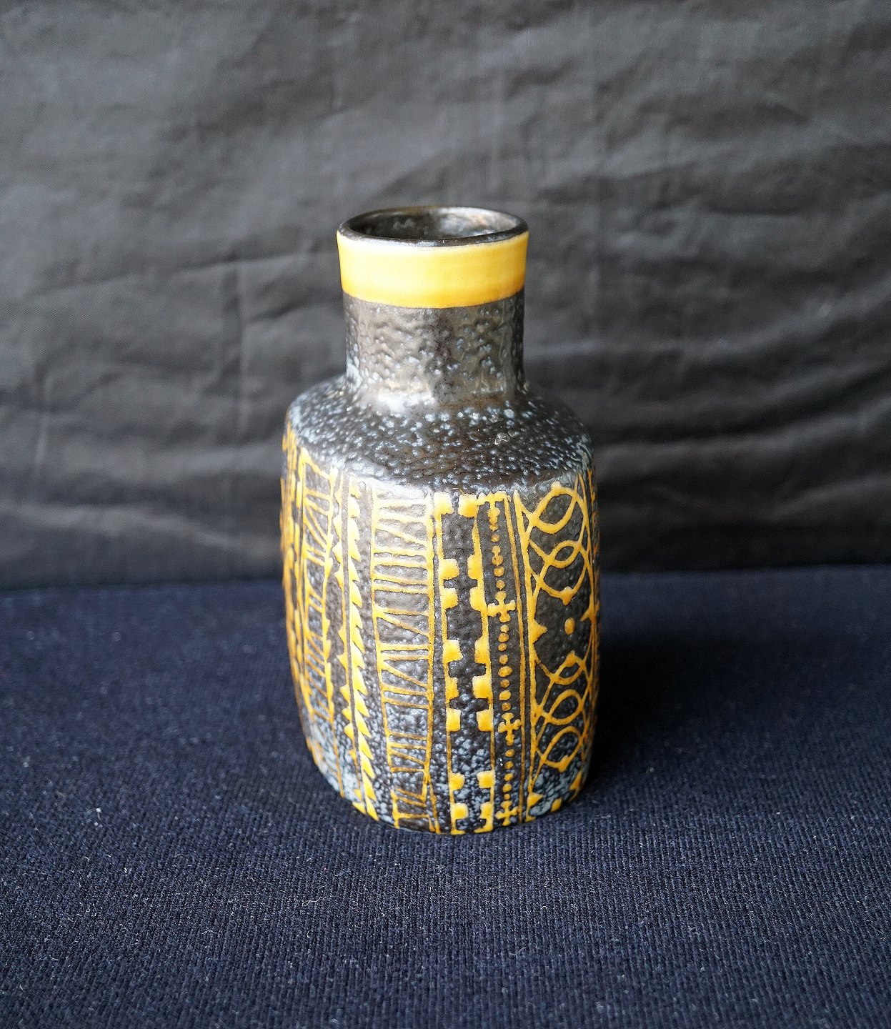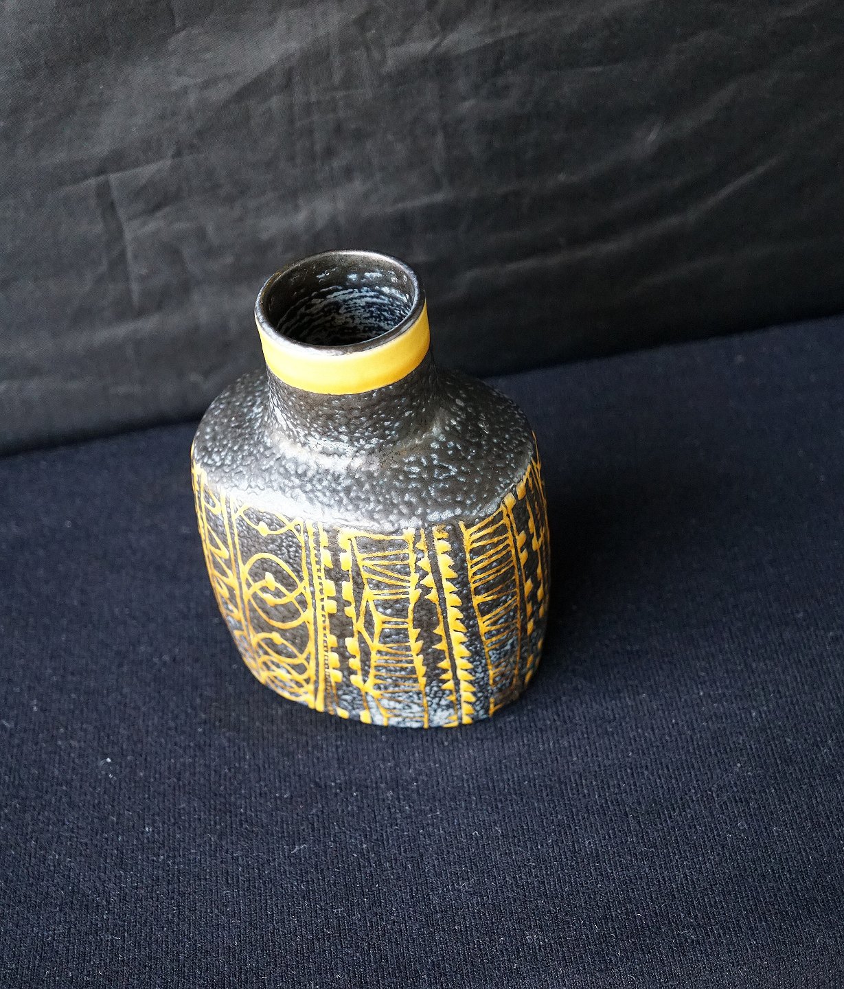Aluminia. Tenera vase, nr 724/3207. Vasen er cholkoladebrun med gulligt mønster.