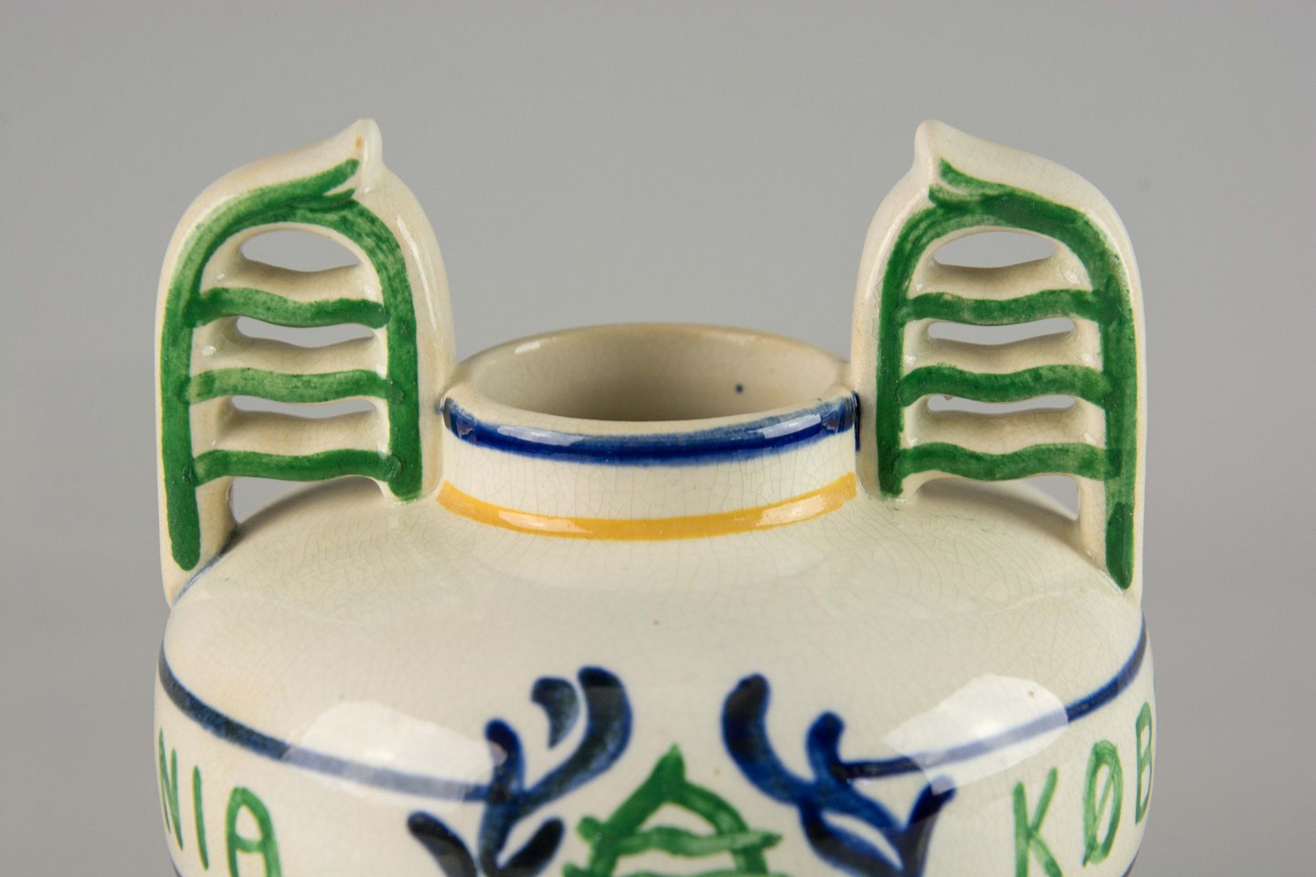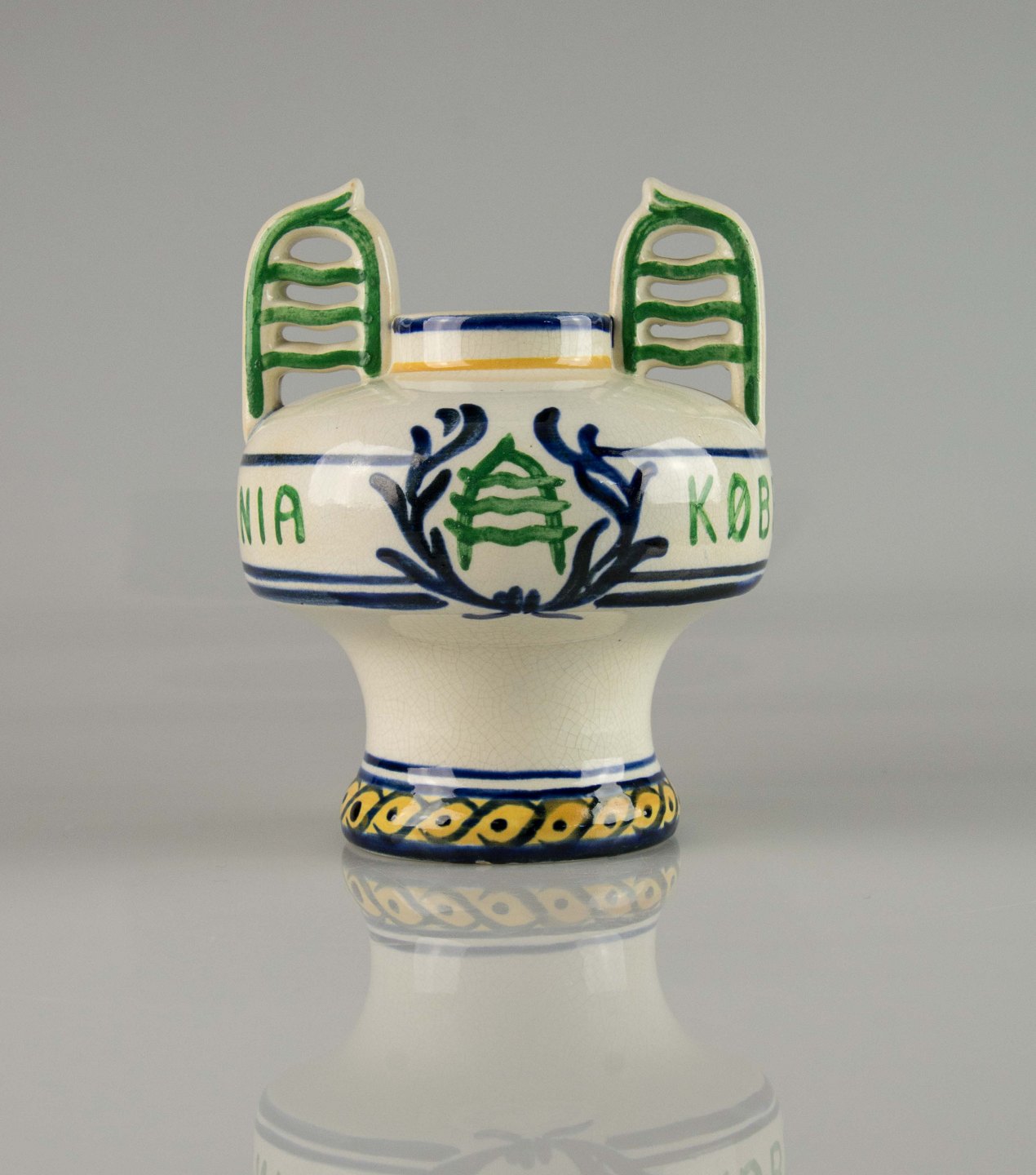 Vase i fajance med hanke i Aluminia signatur nr. 151/257