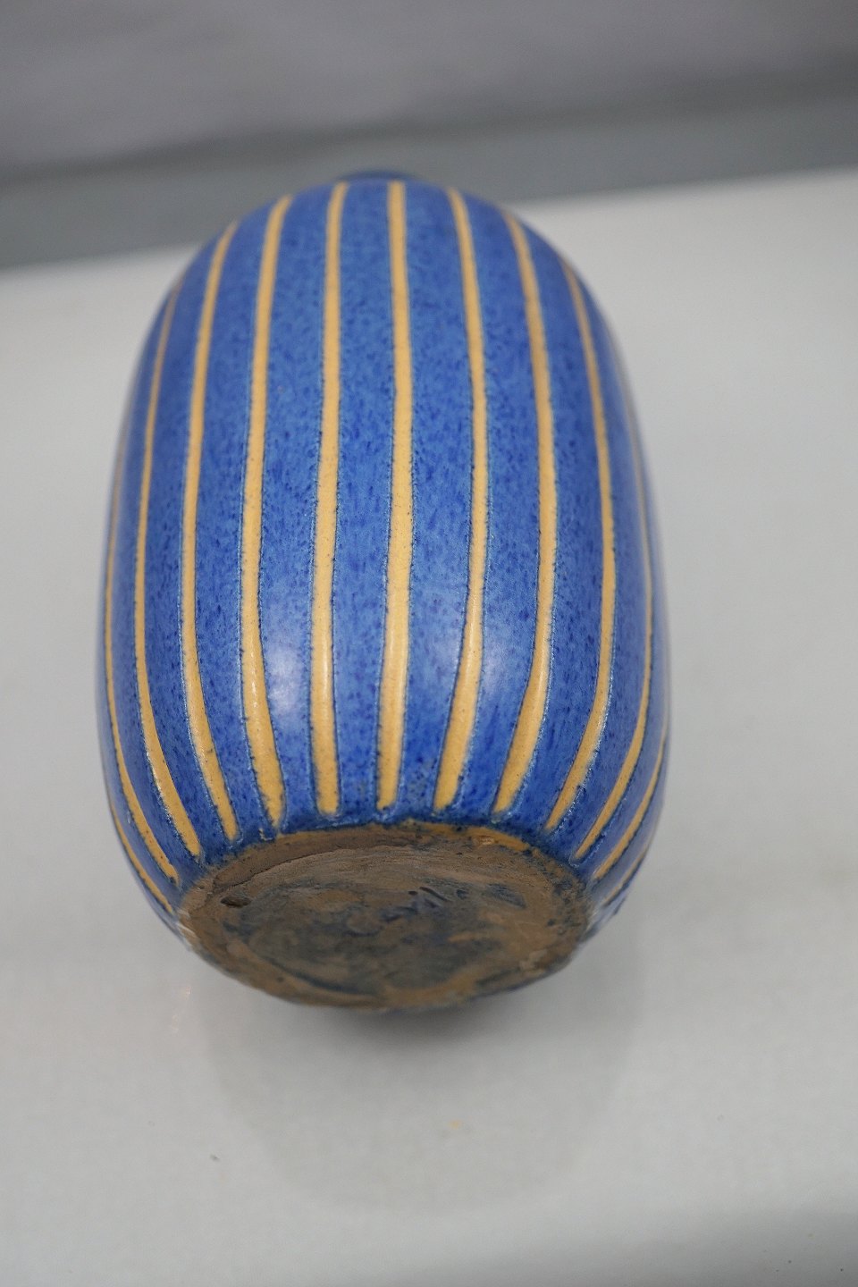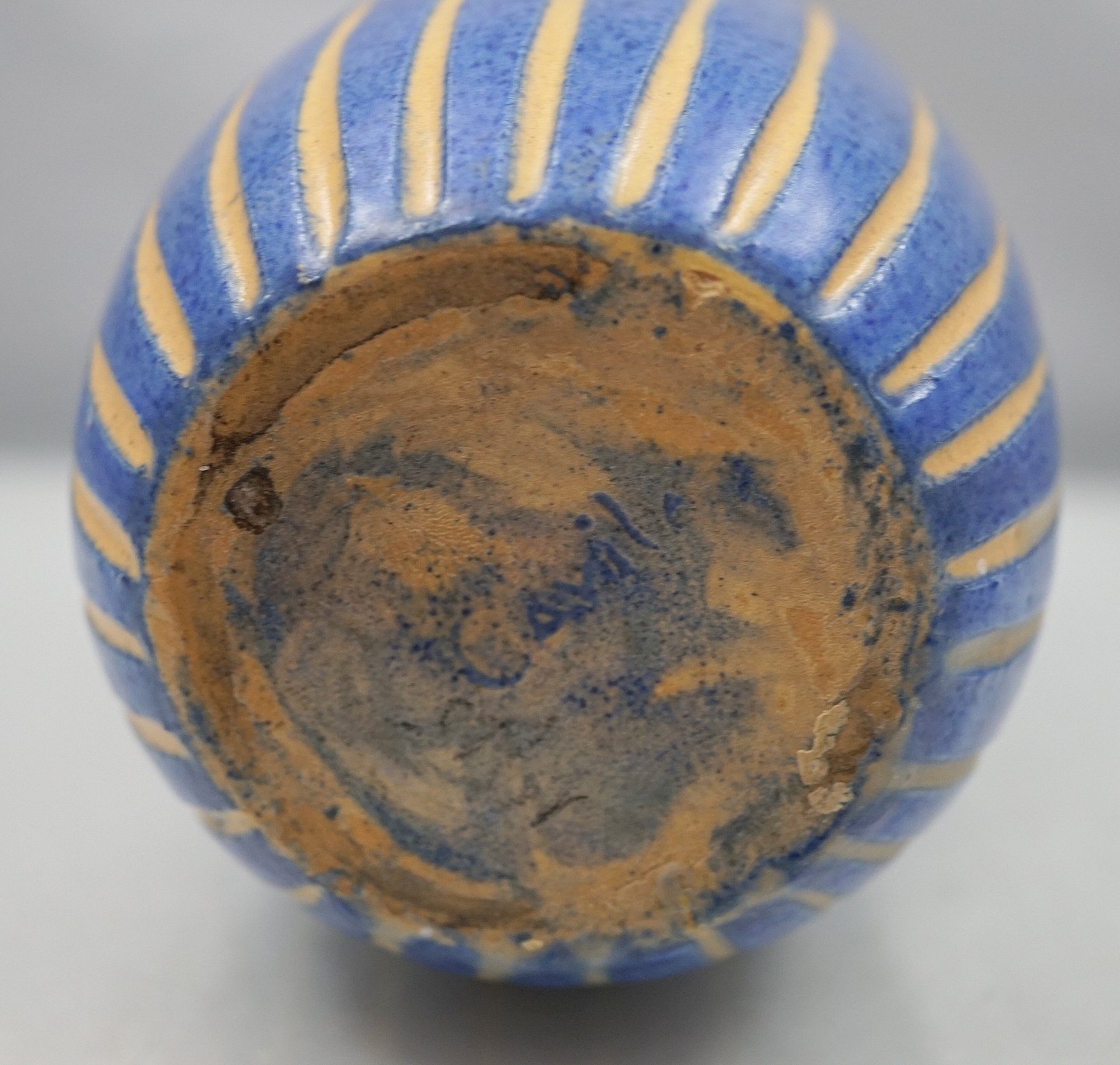 Cavila keramik vase med hank. Blå og hvid glaseret