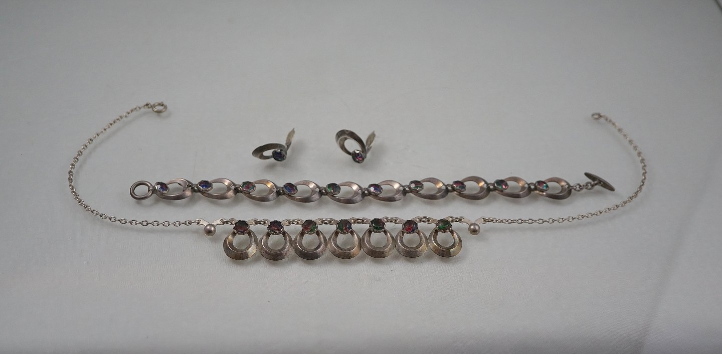 Vintage smykkesæt med multifarvet sten, Sterling sølv