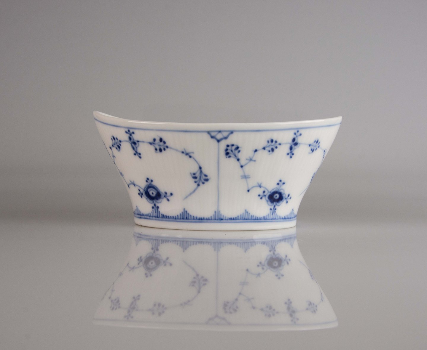Oval skylleskål i porcelæn i serien musselmalet riflet nr. 1/485