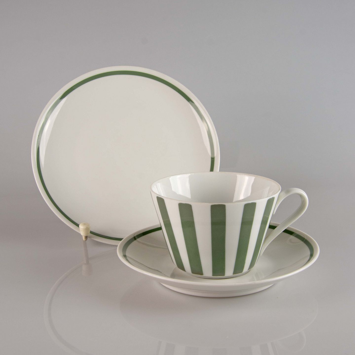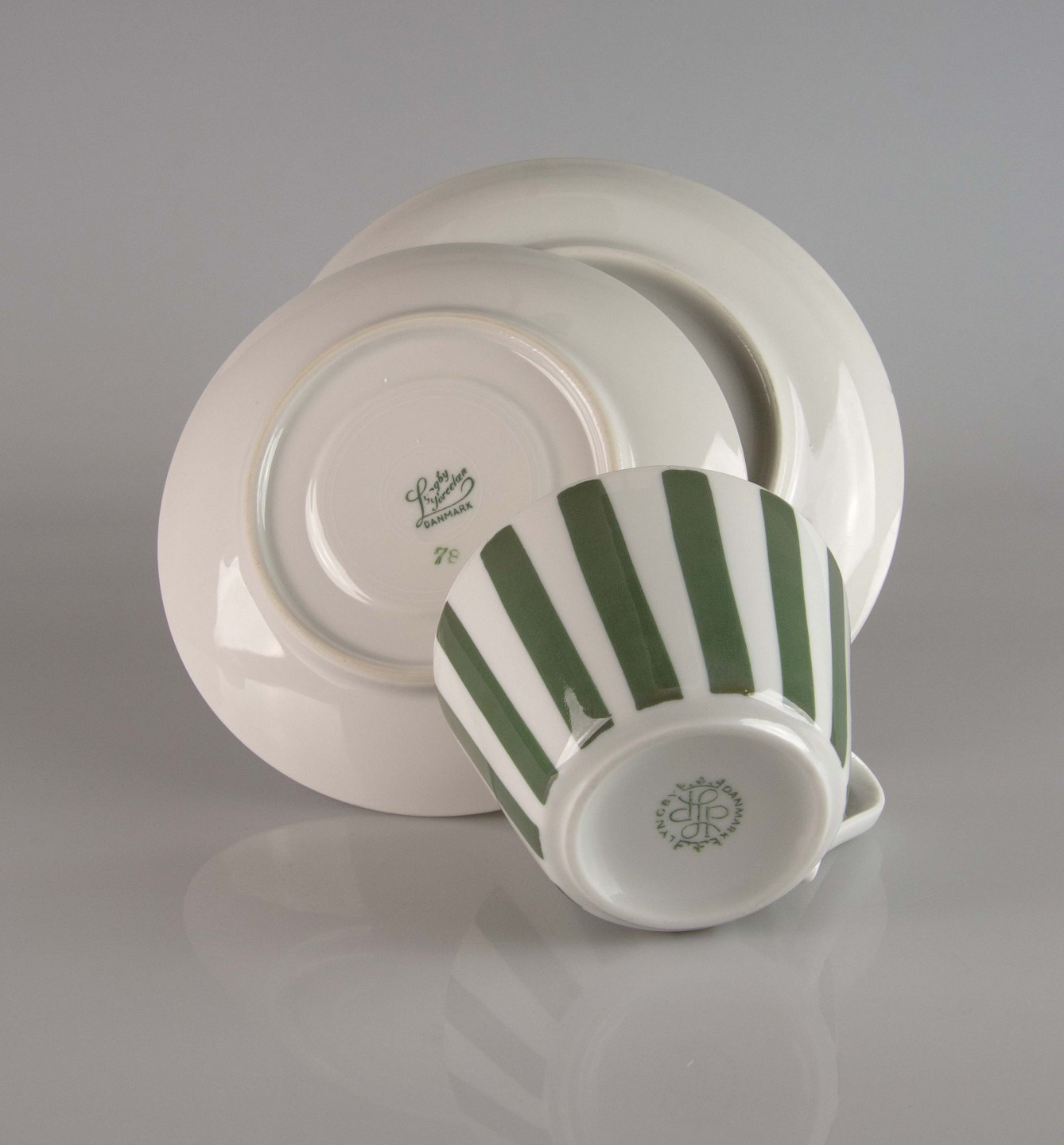 Lyngby stel, Lyngby grønne striber, grønstribet stel, kaffestel, spisestel, Lyngby porcelæn grønne striber