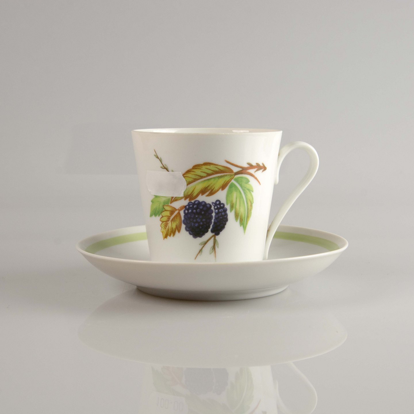 Kaffekop og kagetallerken Danild Lyngby 50 Frugt og Grønt også kendt som Picnic stellet.