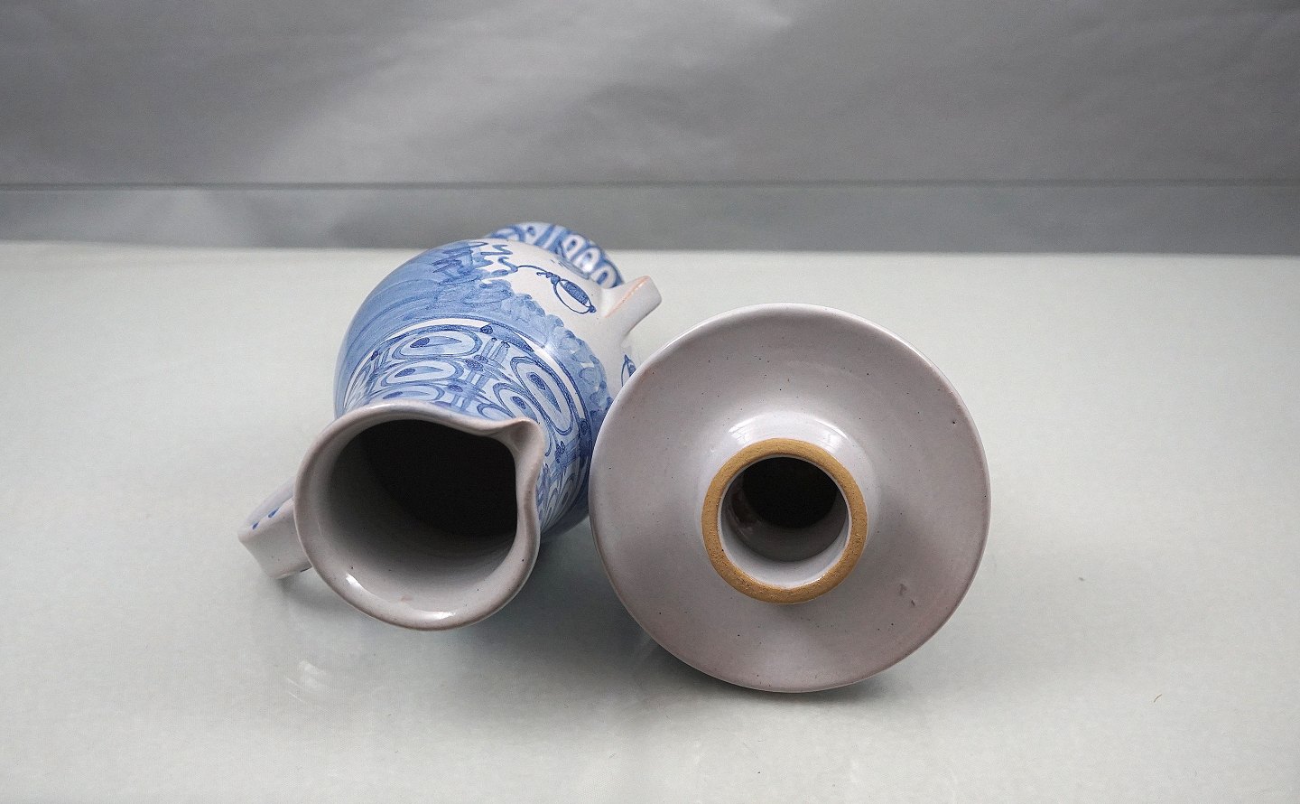 Bjørn Wiinblad, Damehoved med hat, der fungerer som kande med låg, nr K31. Damehovedet er malet med blåt