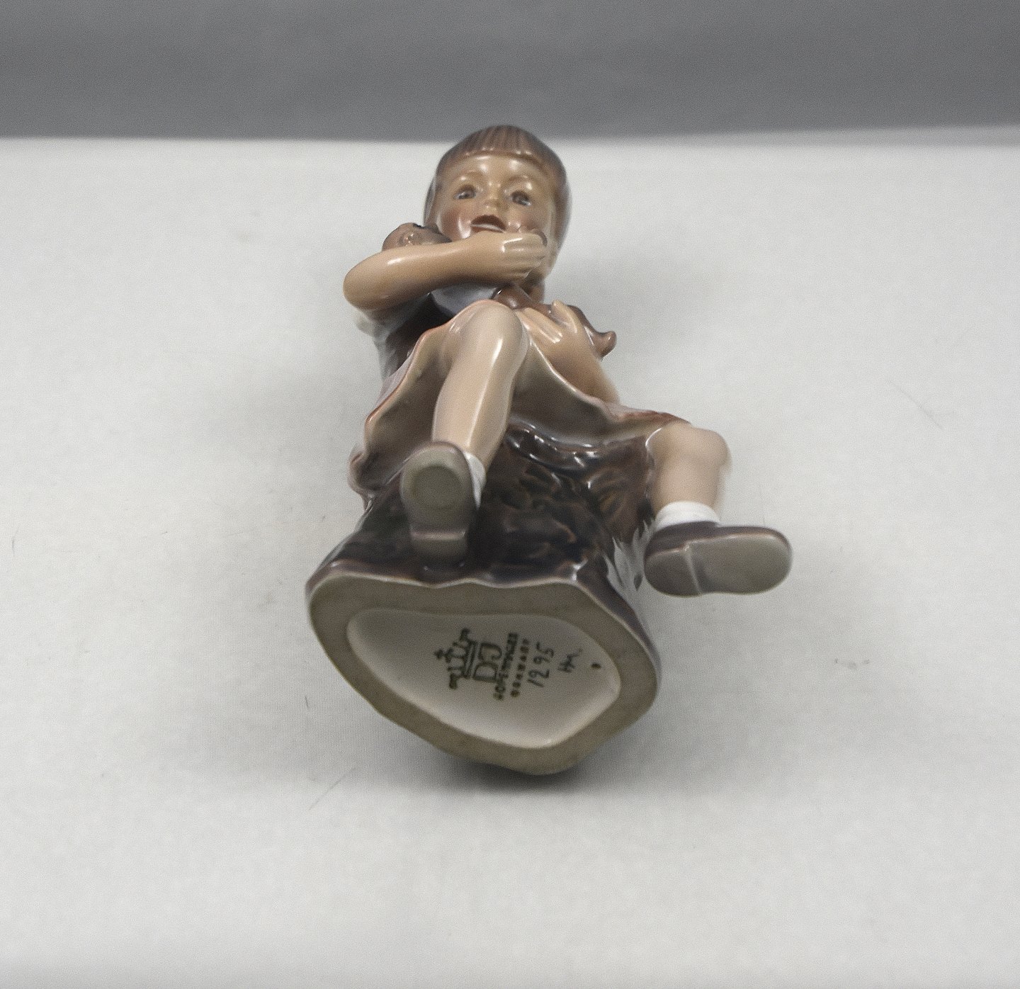Figur i porcelæn med motiv af Pige, Bente, med dukke nr. 1295