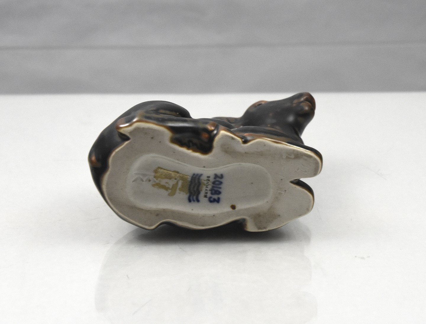 Royal Copenhagen figur af brun, liggende dåhjort, i stentøj, nr 20183.